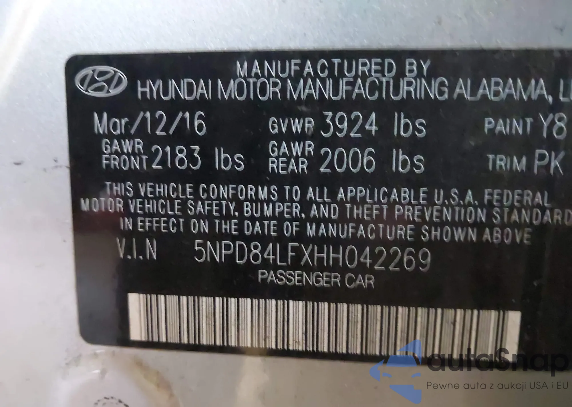 • VIN 5NPD84LFXHH042269