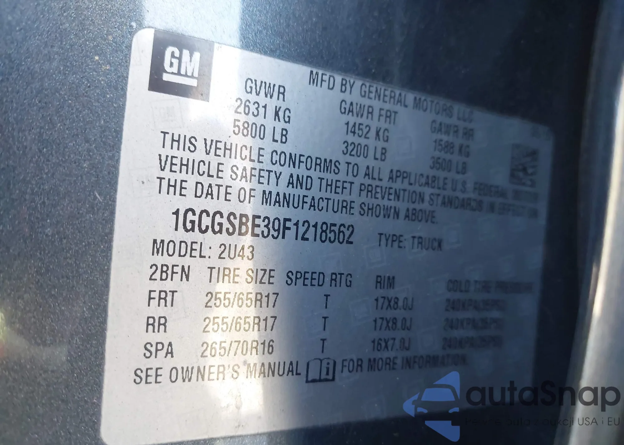LOT: 43721381 VIN: 2GNAXUEV2K6301754