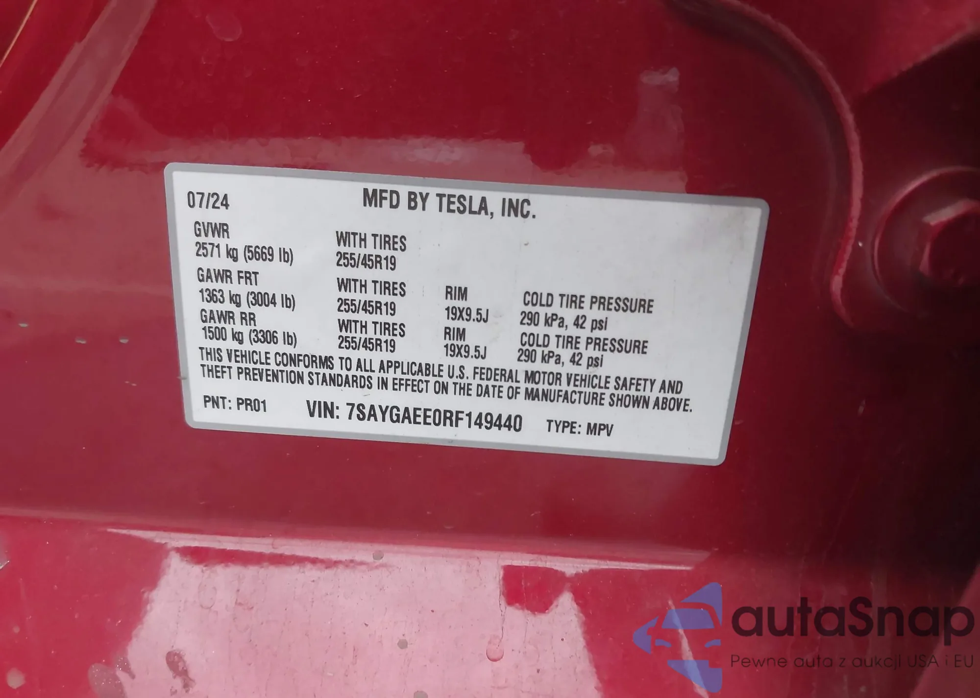 2024 Tesla Model Y Long Range Dual Motor All-Wheel Drive z USA, uszkodzony, nr VIN 7SAYGAEE0RF149440