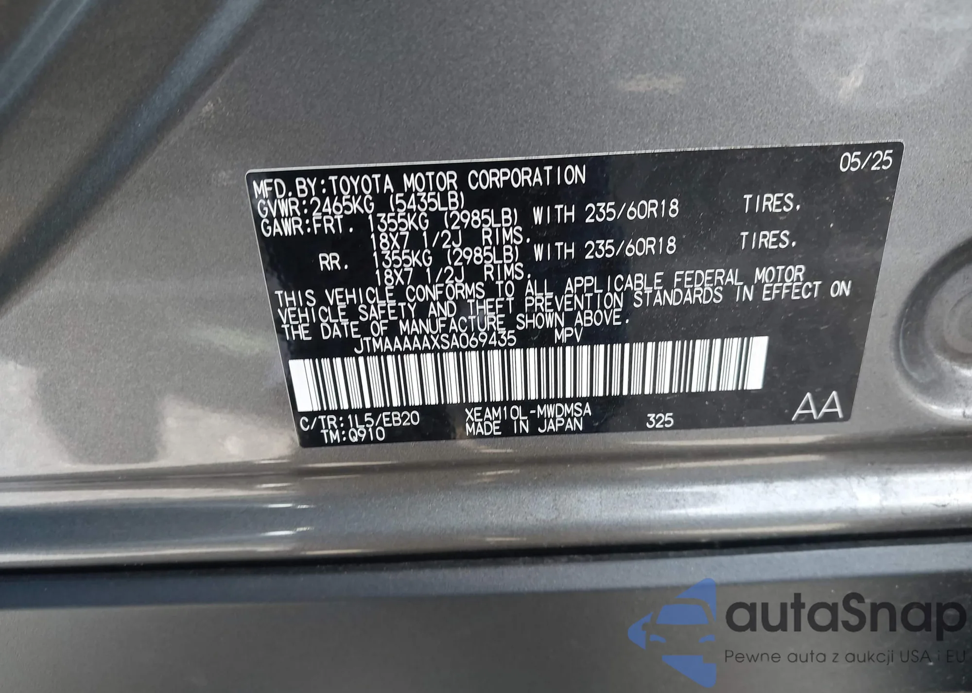 LOT: 43619138 VIN: JTMRWRFV6RD257750