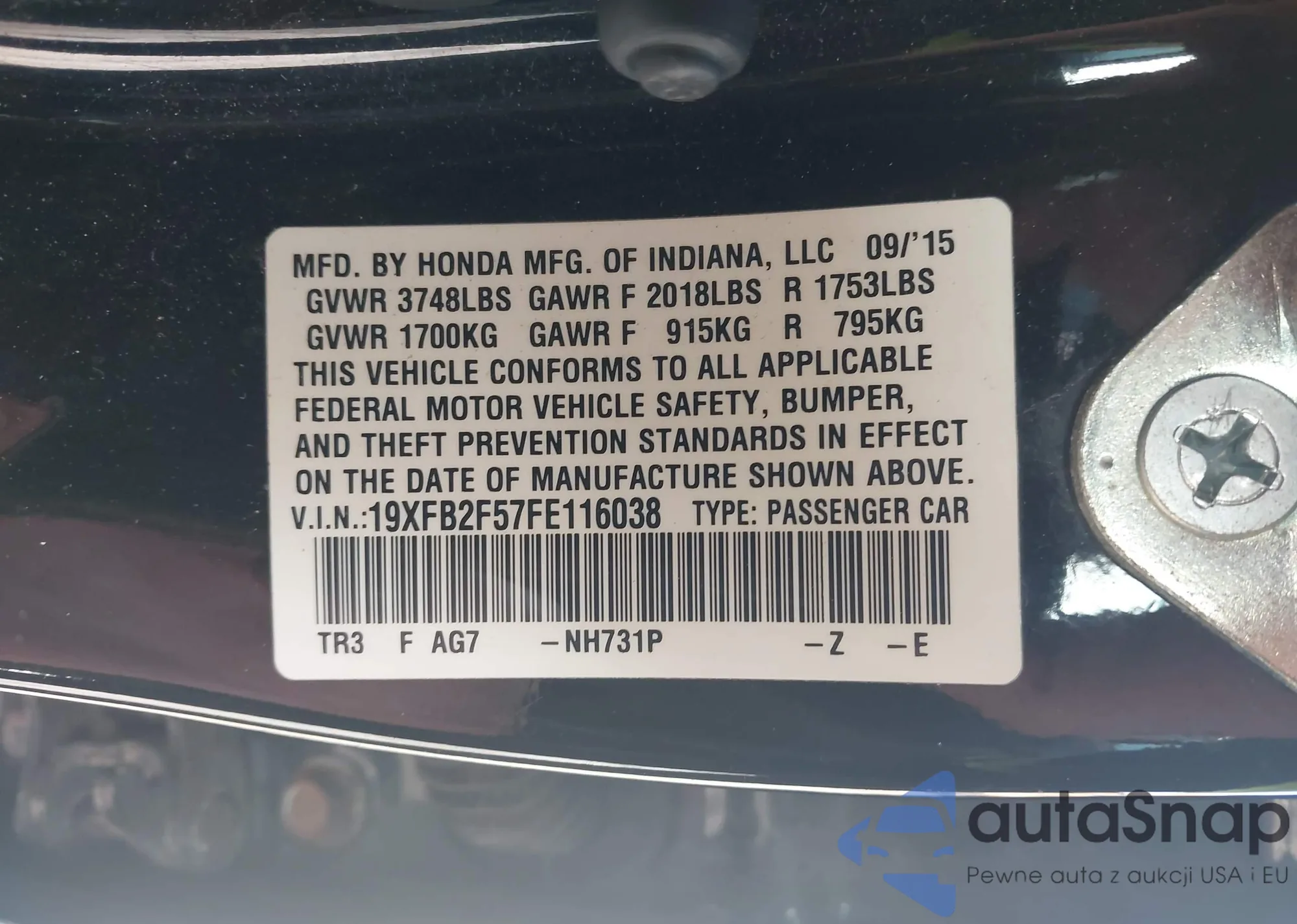 • VIN 19XFB2F57FE116038