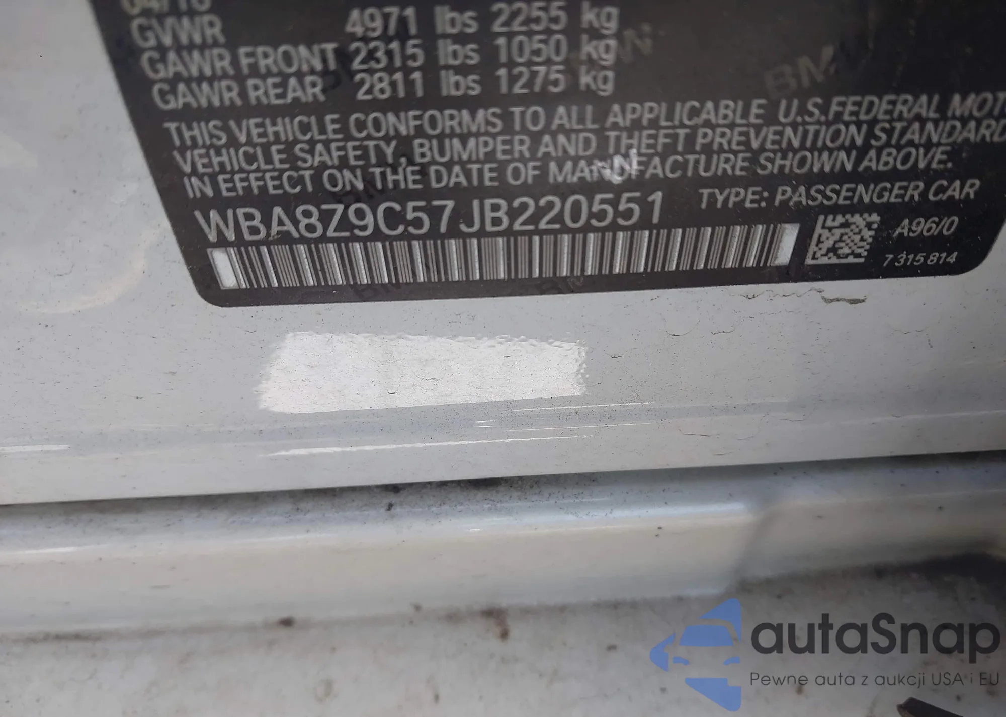 • VIN WBA8Z9C57JB220551