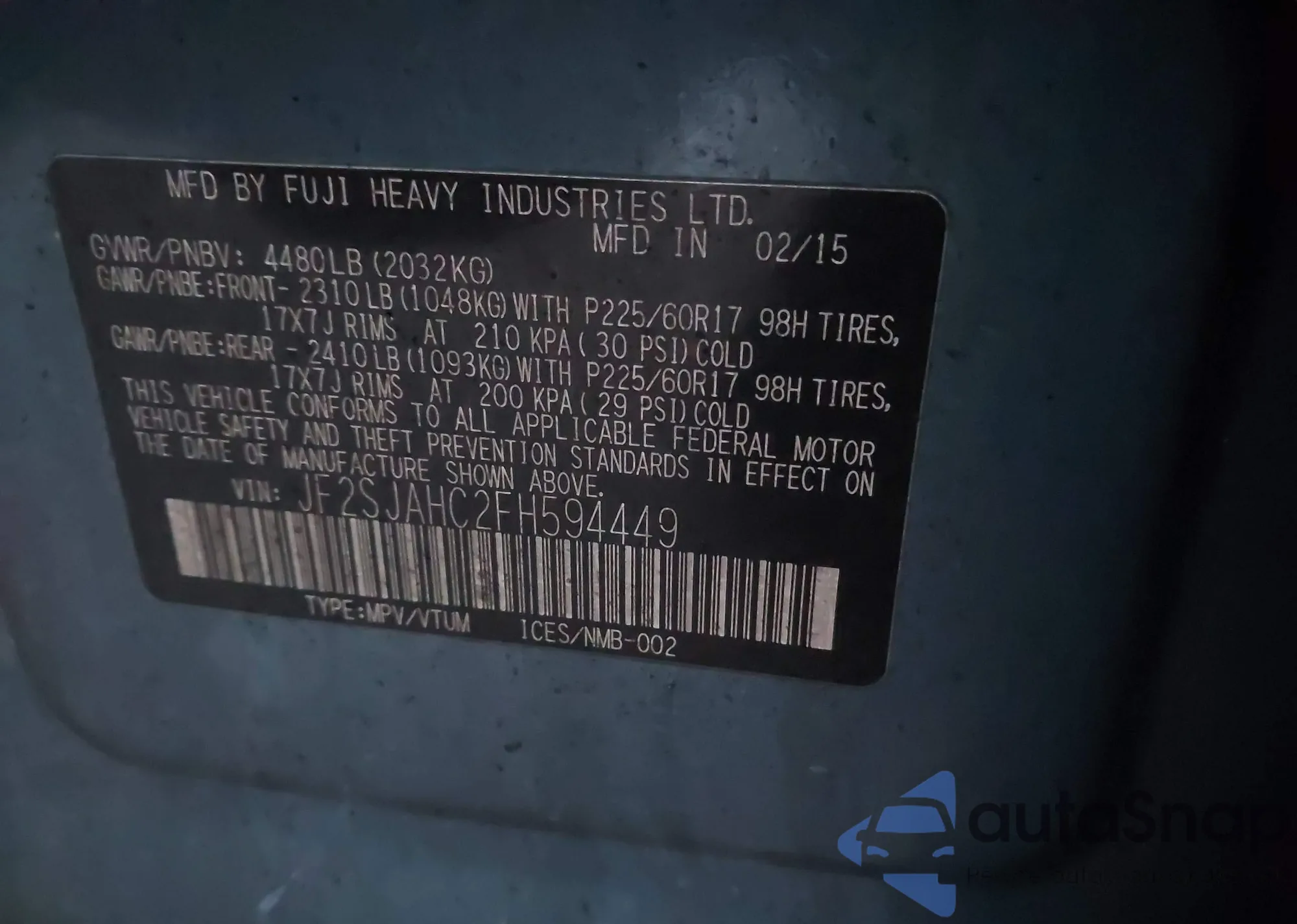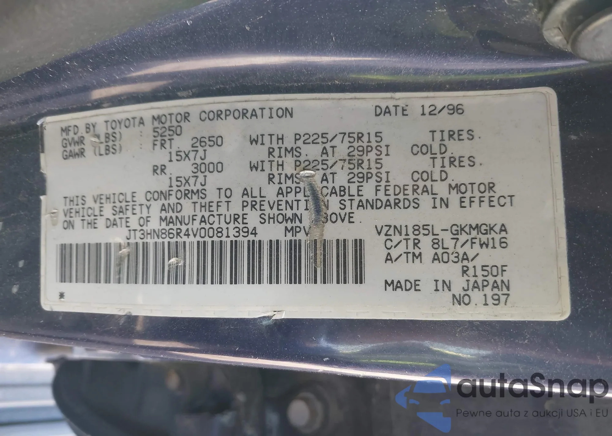 LOT: 43727441 VIN: JT3HN86R4V0081394