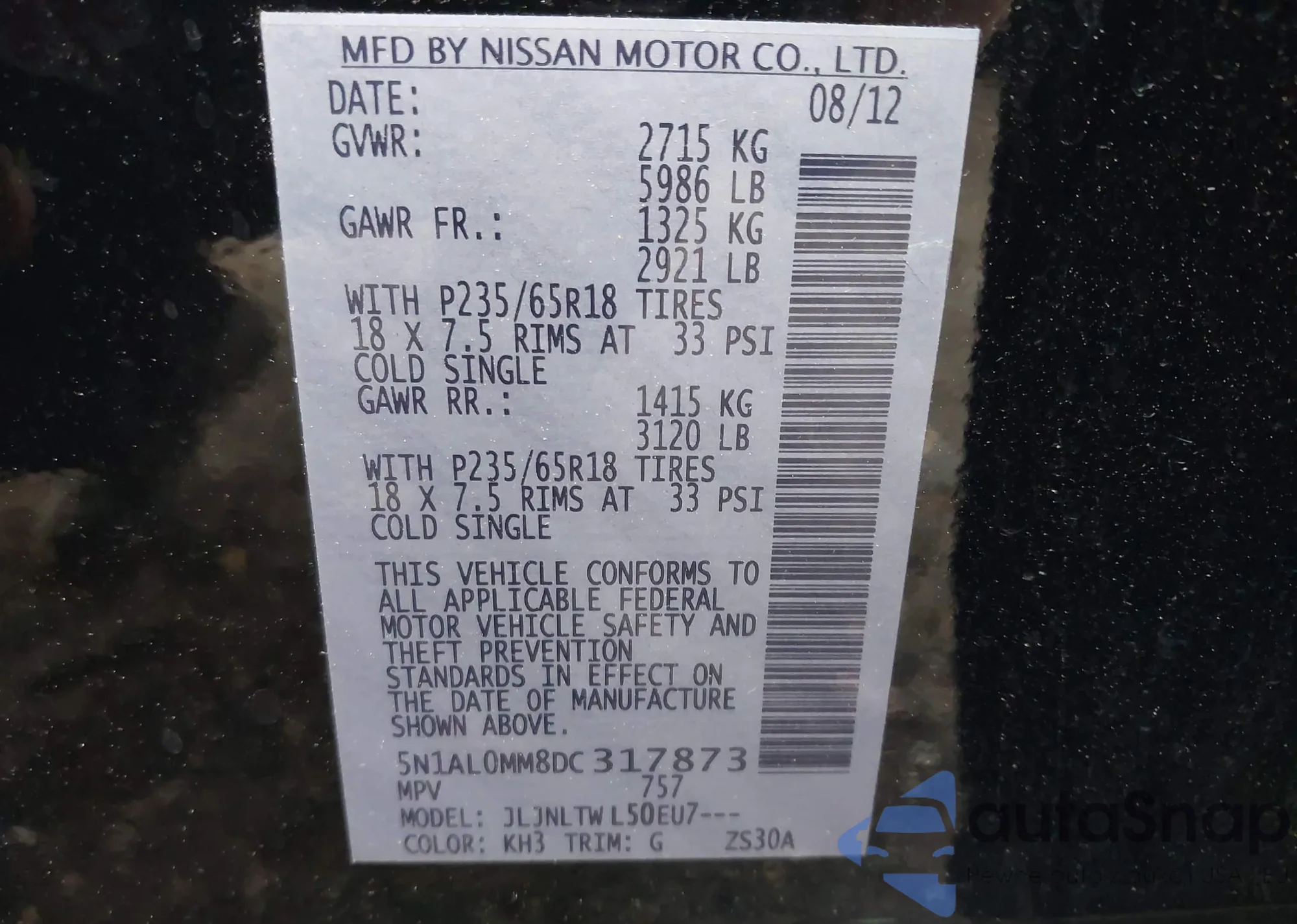 • VIN 5N1DR2MN3HC631498