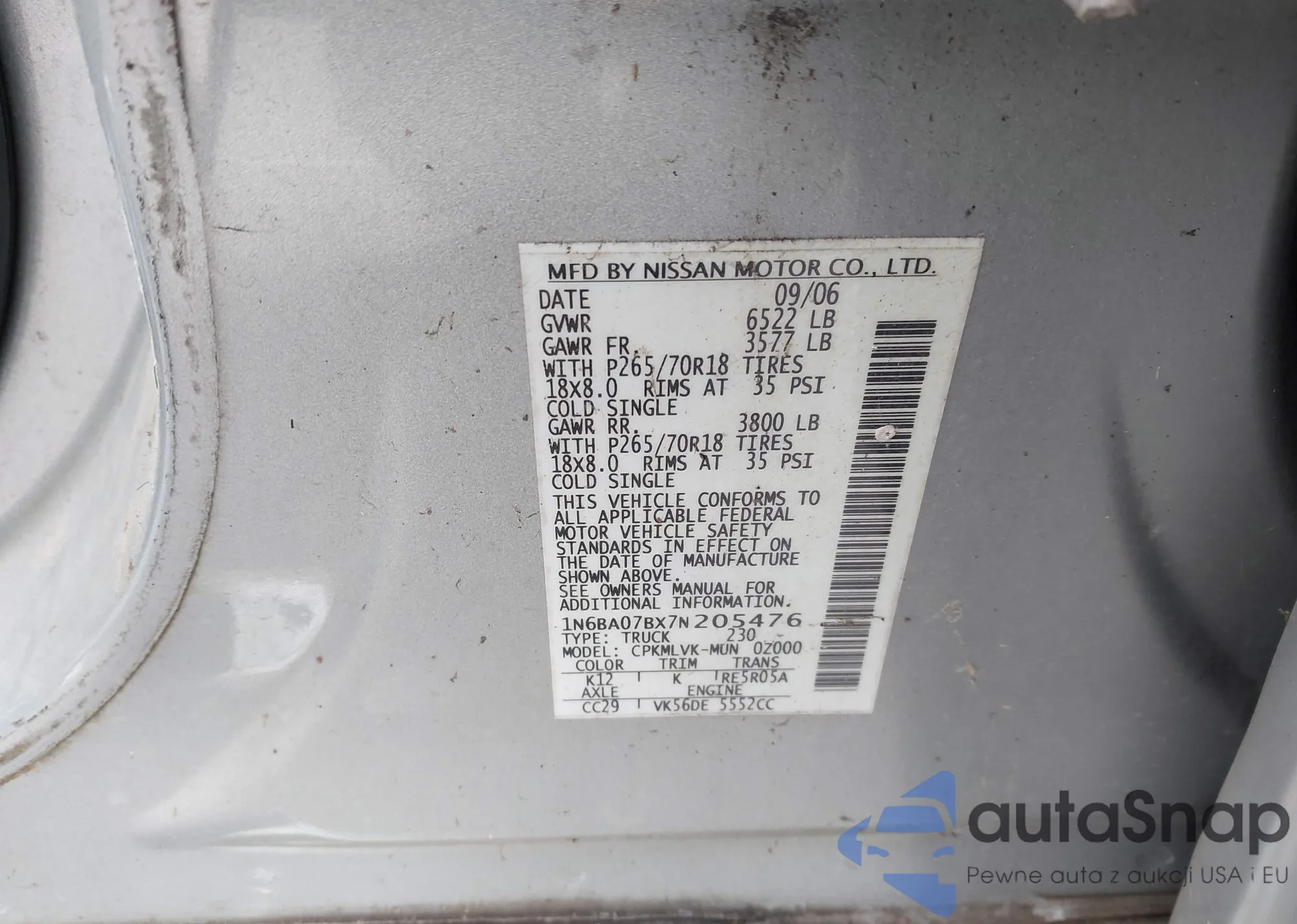 • VIN 2GNALDEK6C6320570