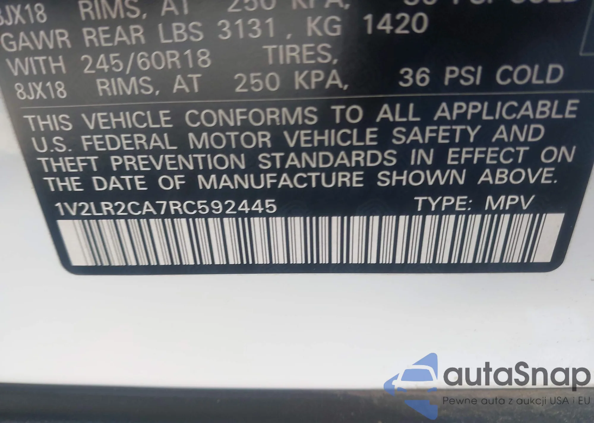 • VIN 1V2DR2CA1SC529822