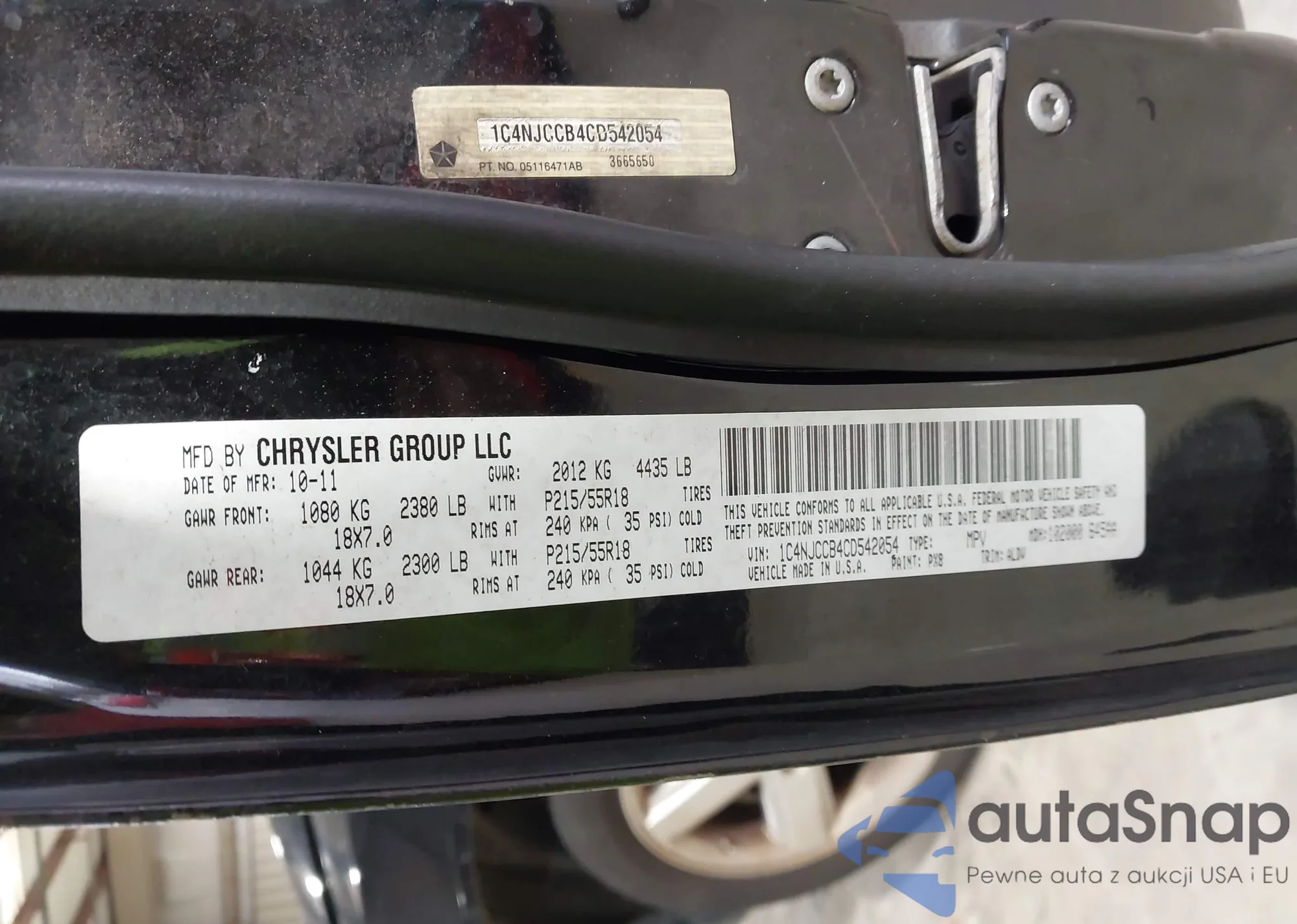 LOT: 43910596 VIN: 1C4NJCCB4CD542054