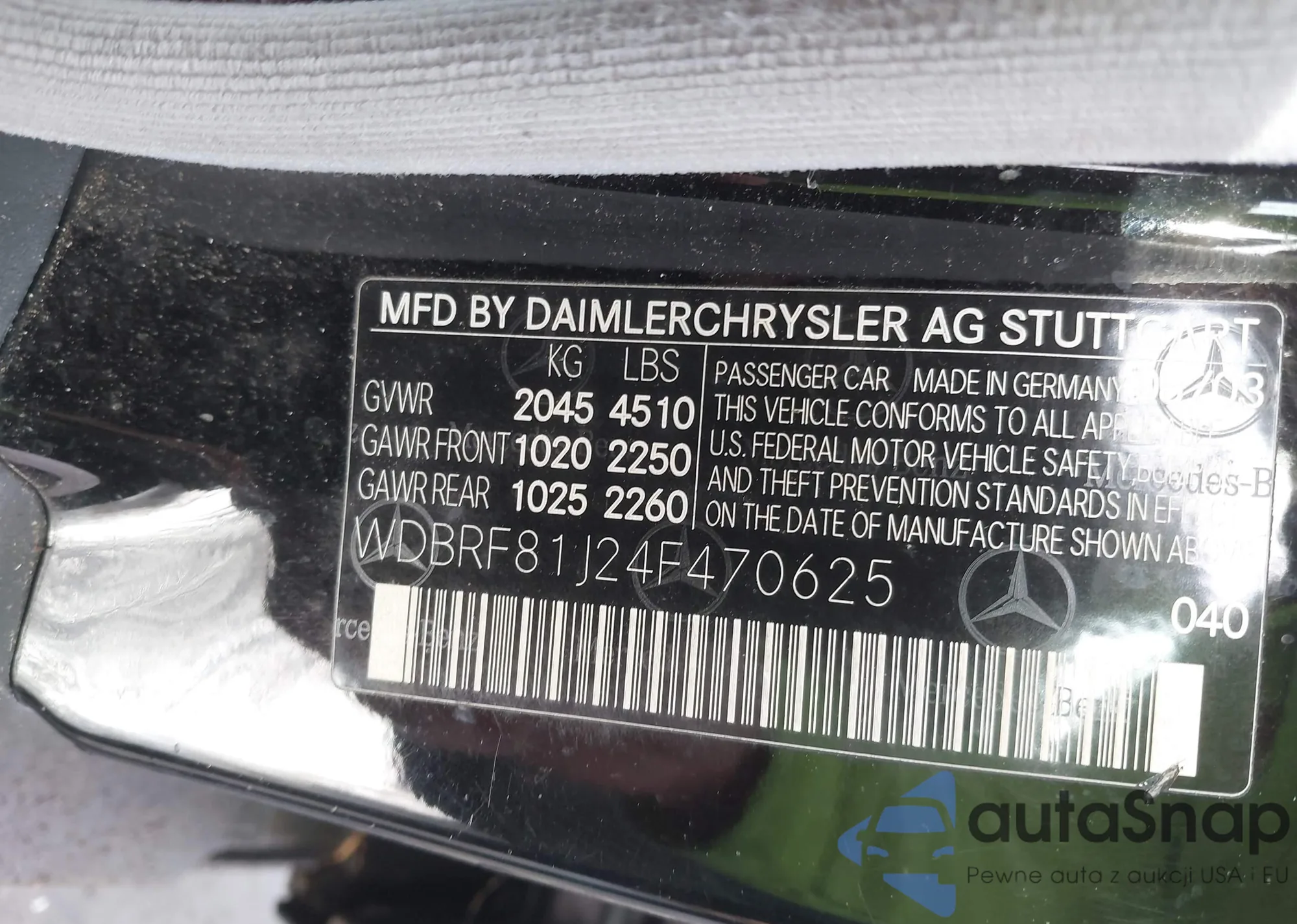 • VIN WDBRF81J24F470625