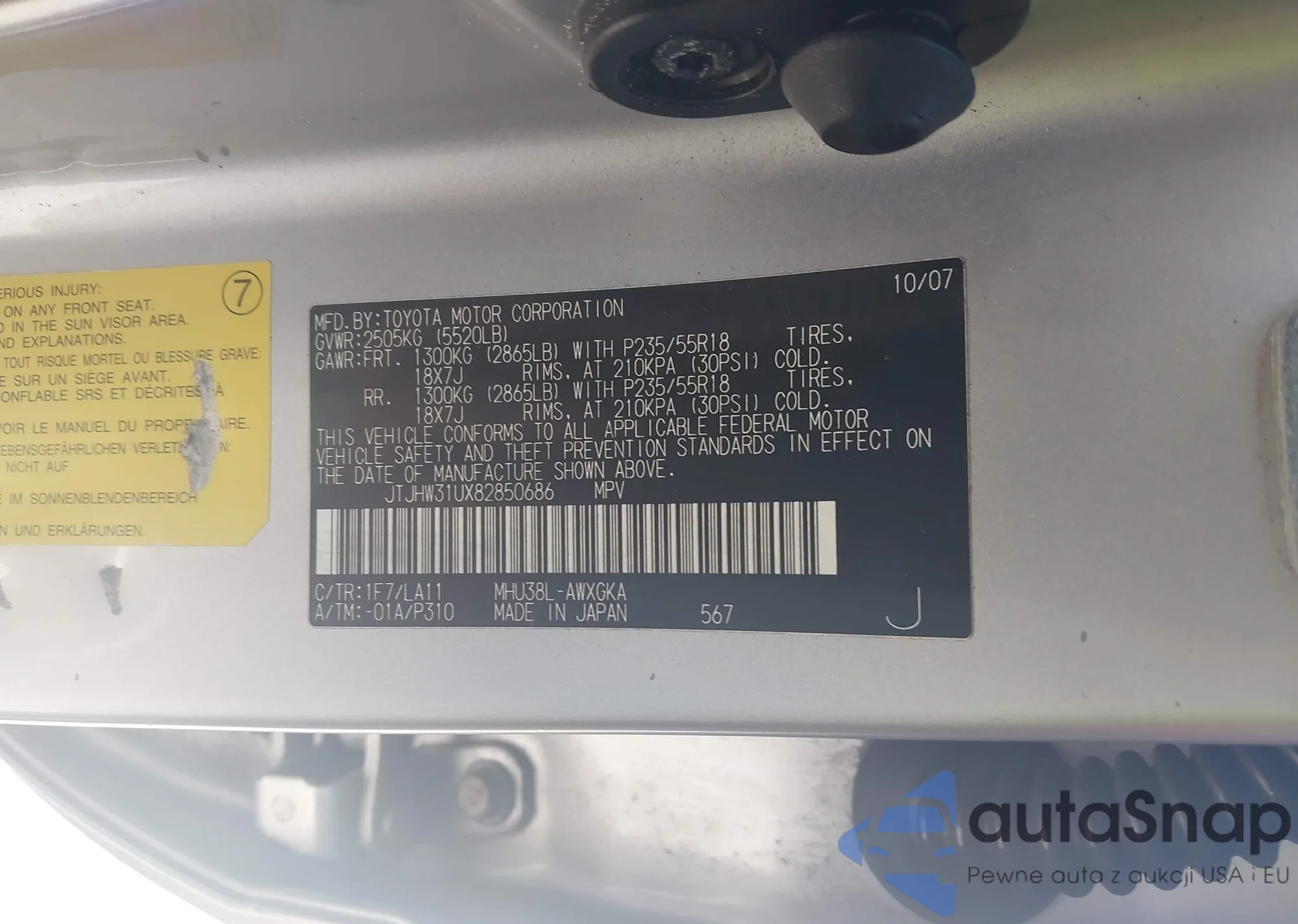 LOT: 43969922 VIN: KNDJP3A54F7193233