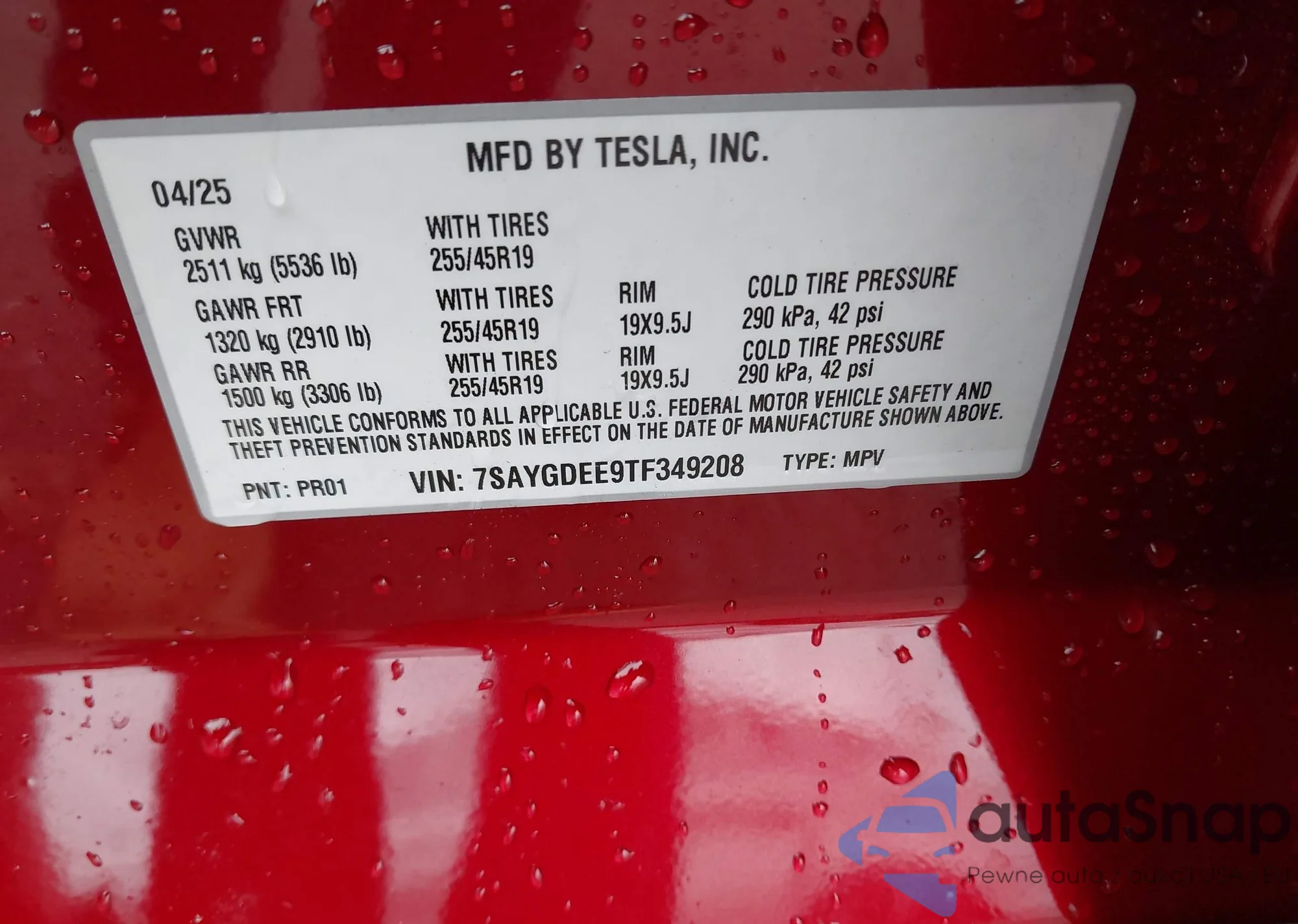 LOT: 43682525 VIN: 7SAYGDEE9TF349208