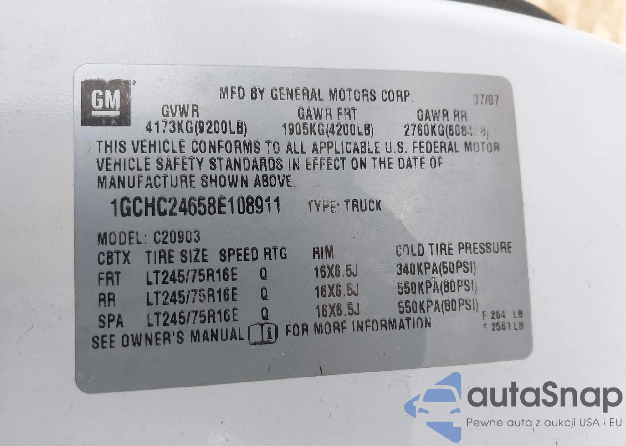 • VIN 3GCPCSE06BG145987