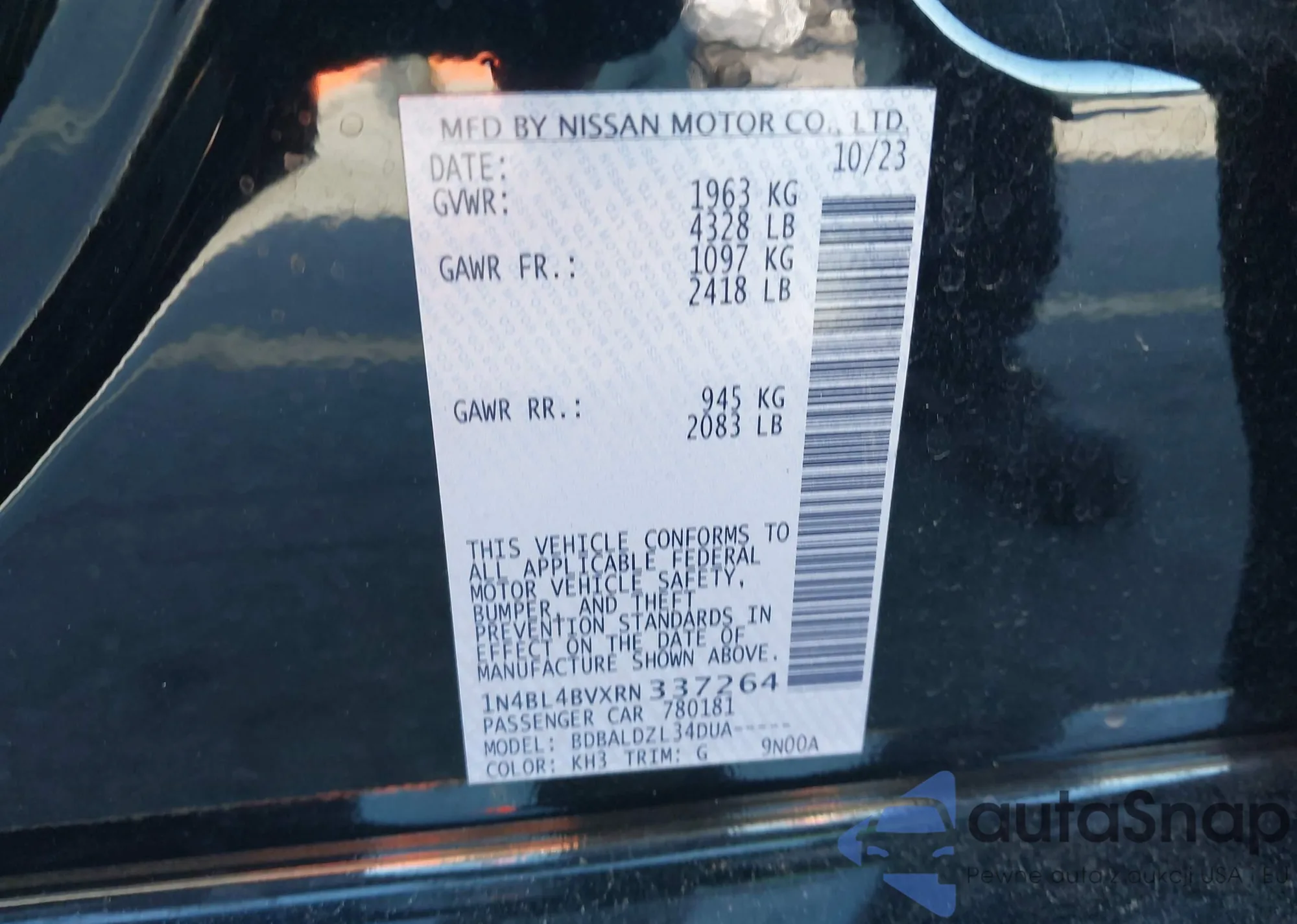 LOT: 43603199 VIN: 1N4BL4BVXRN337264