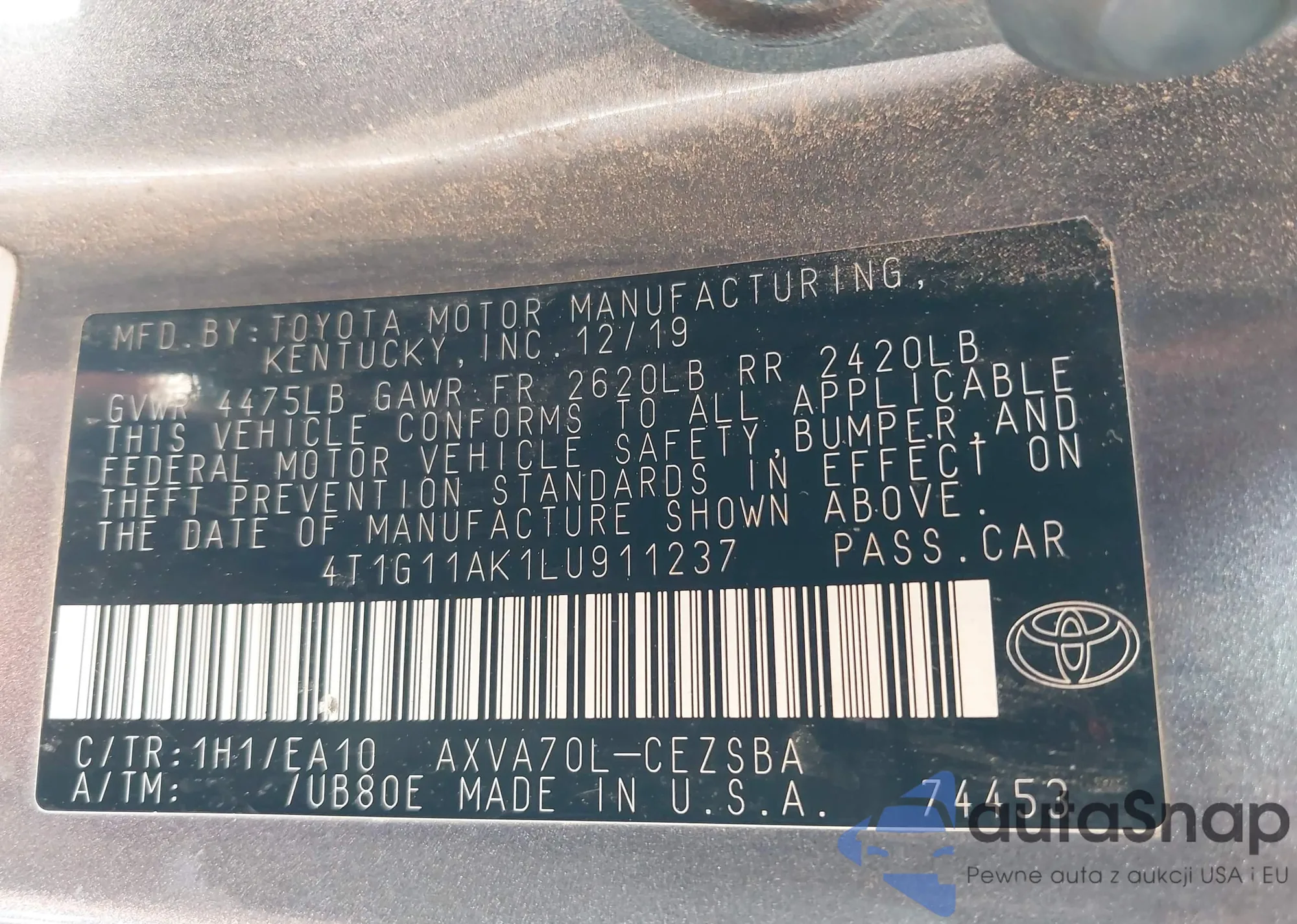 LOT: 43906070 VIN: 4T1BF1FK1CU146583