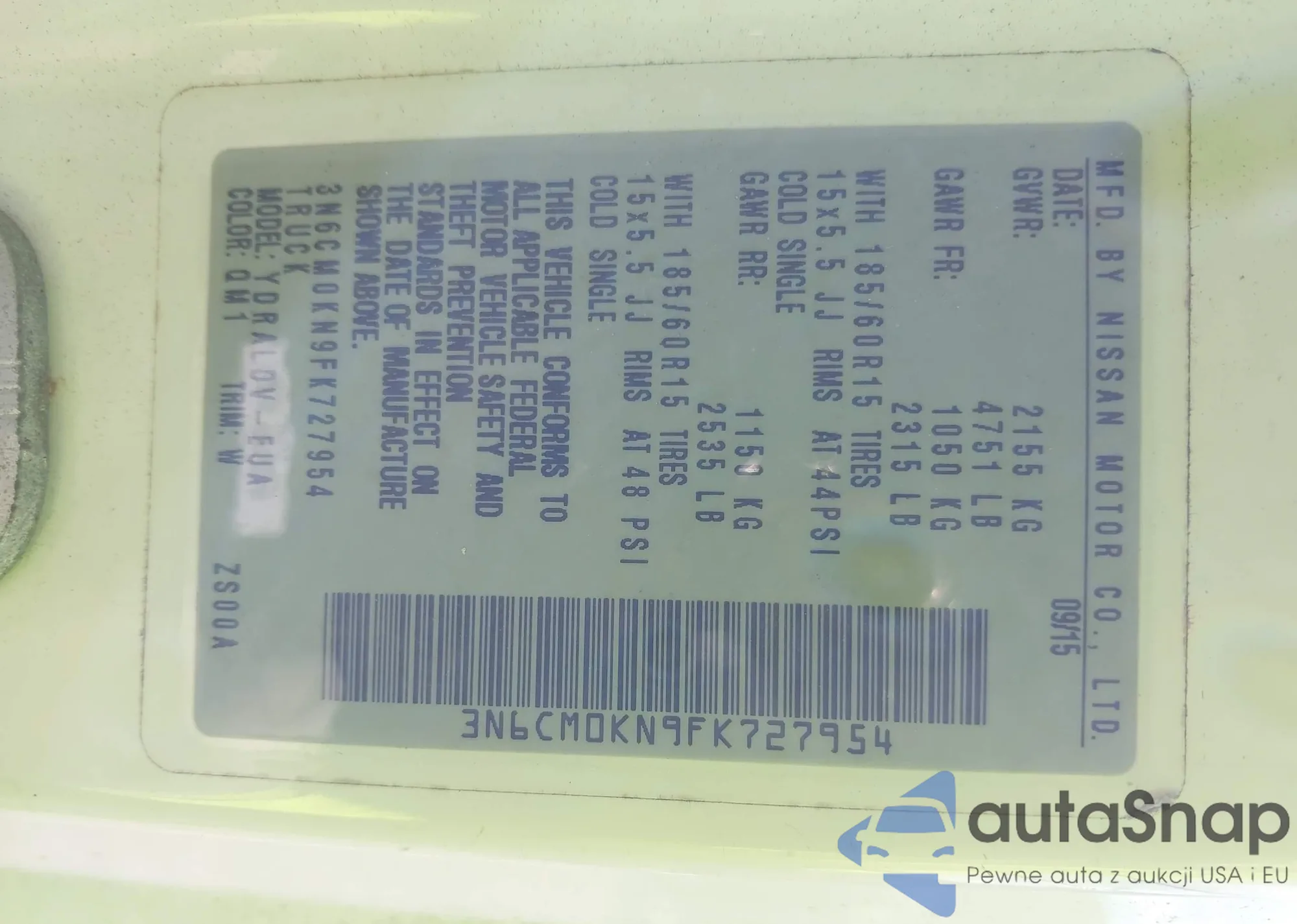 • VIN 3N6CM0KN9FK727954