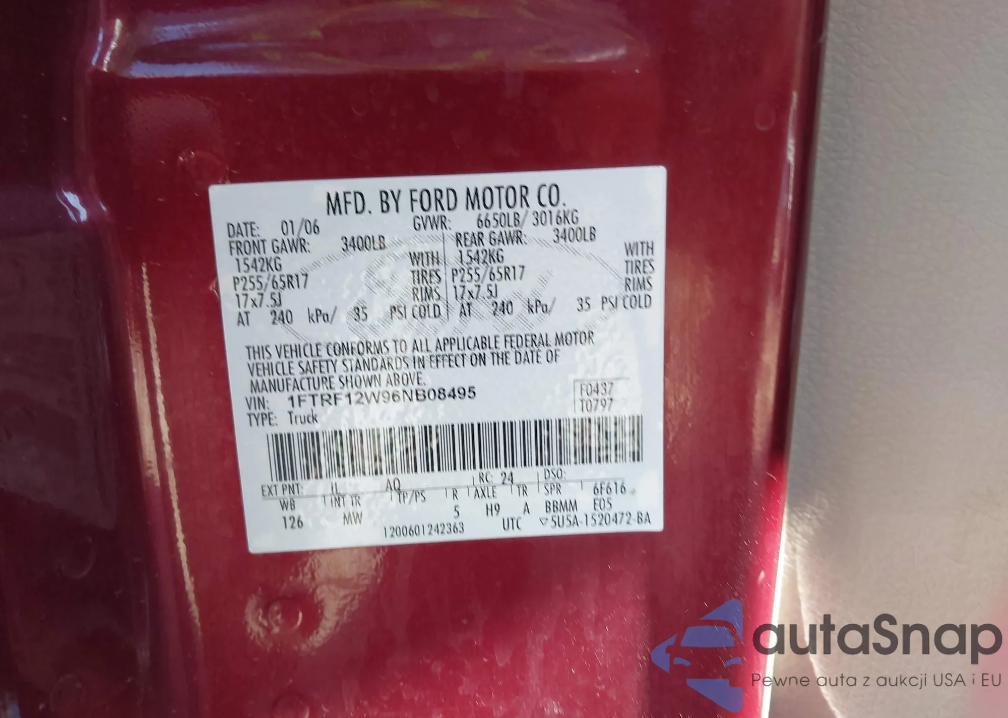 • VIN 1FTRF12W96NB08495