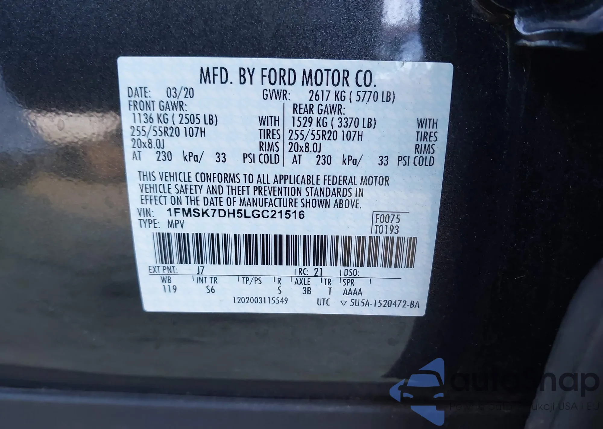 LOT: 44024583 VIN: 1HGFA16897L091886