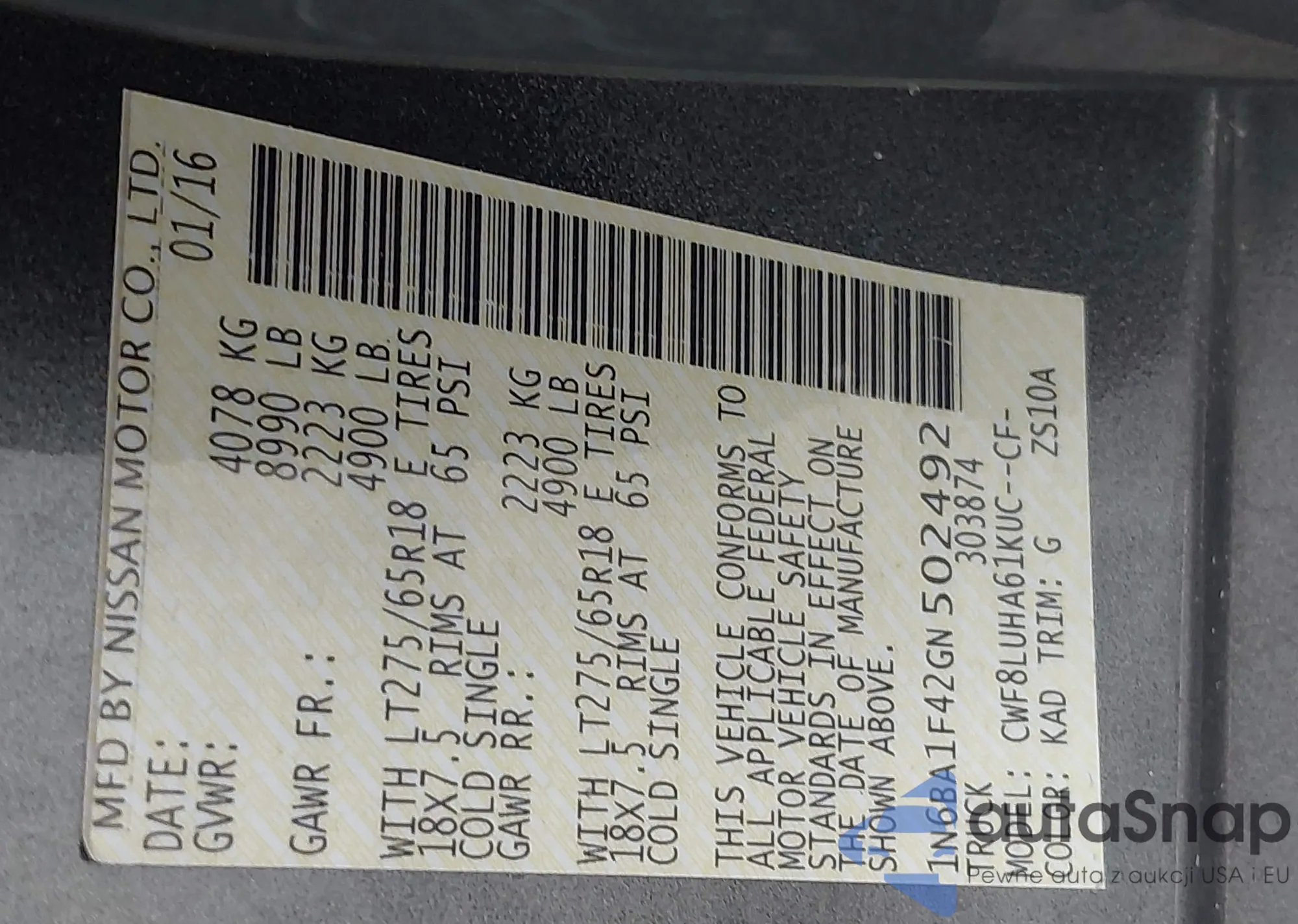 • VIN 1N6BA1F42GN502492
