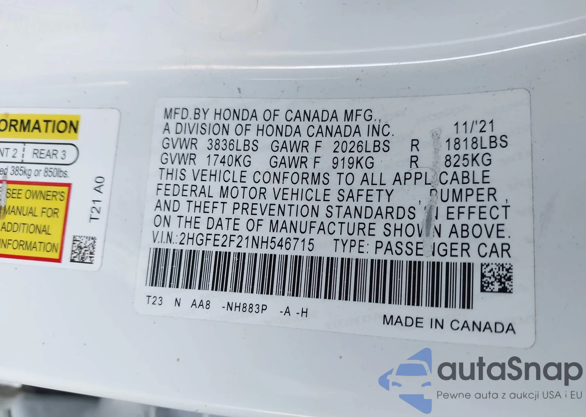 • VIN 2HGFE2F21NH546715
