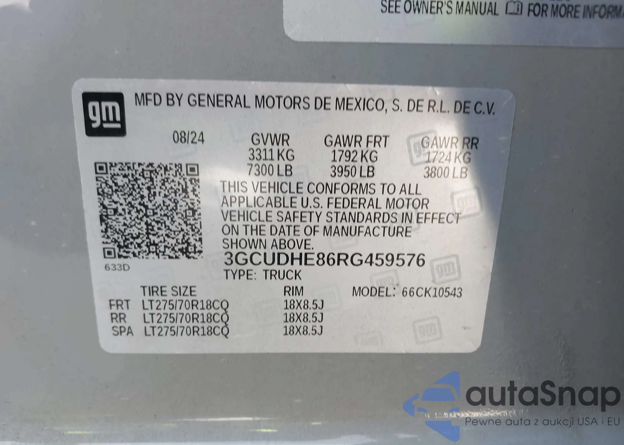 • VIN 3GCUDHE86RG459576