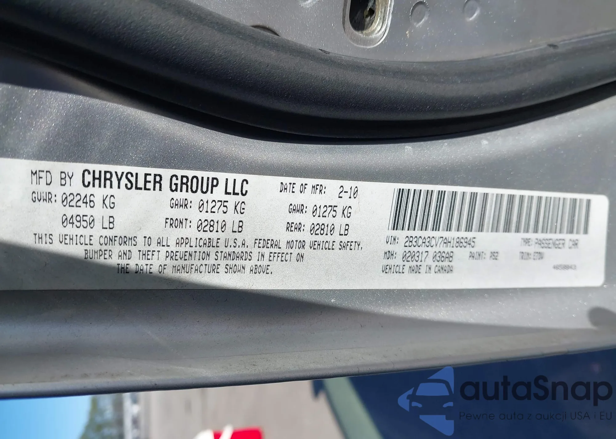 • VIN 2B3CA3CV7AH186945