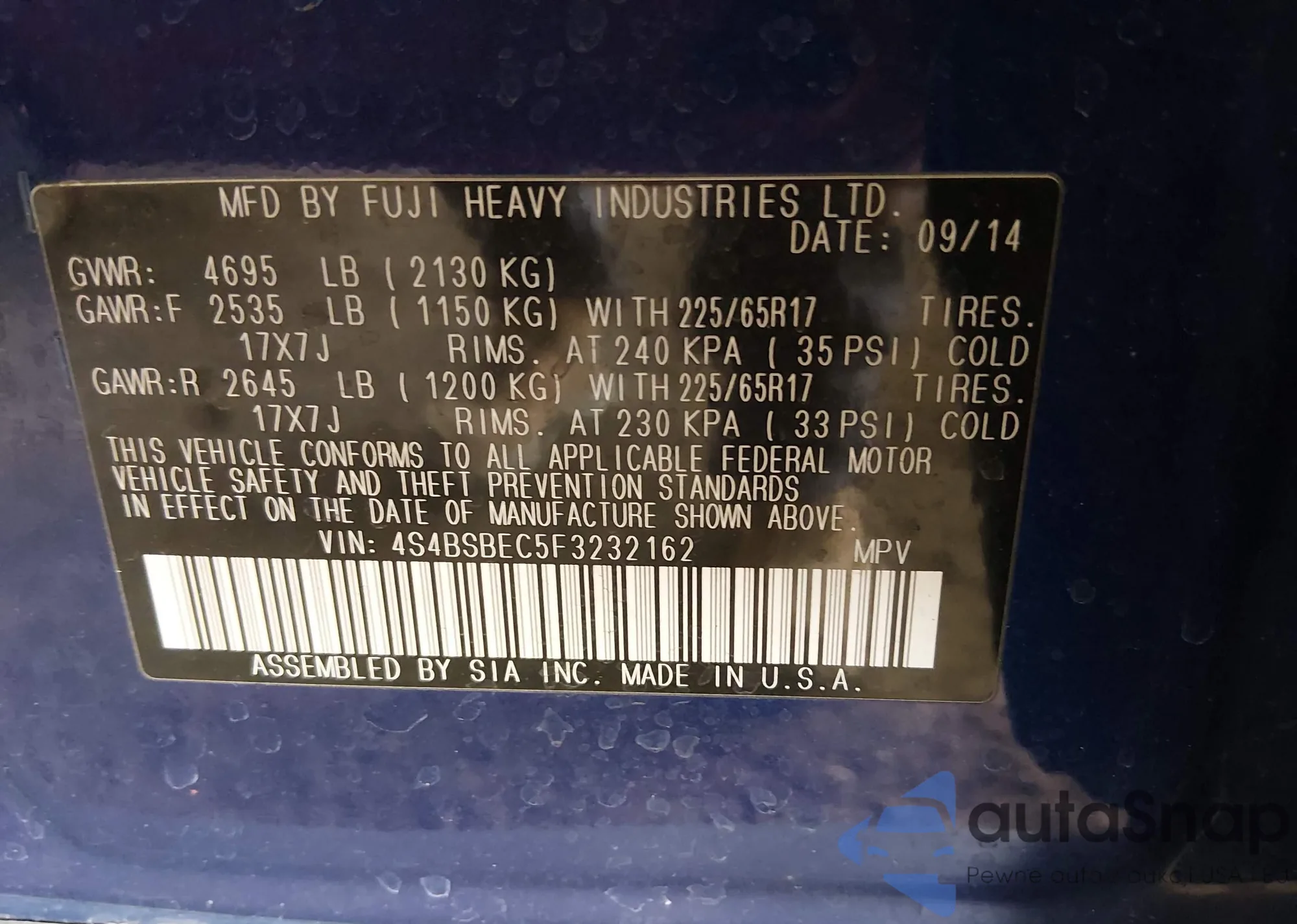 • VIN 4S4BSBEC5F3232162