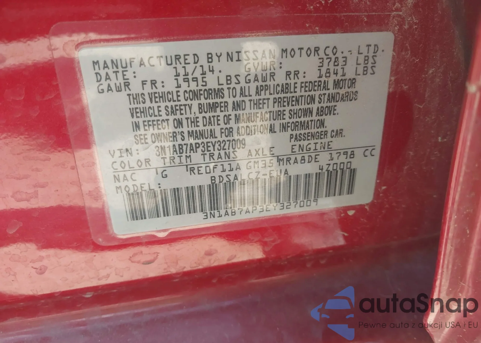 LOT: 43263883 VIN: 3N1AB7AP3EY327009