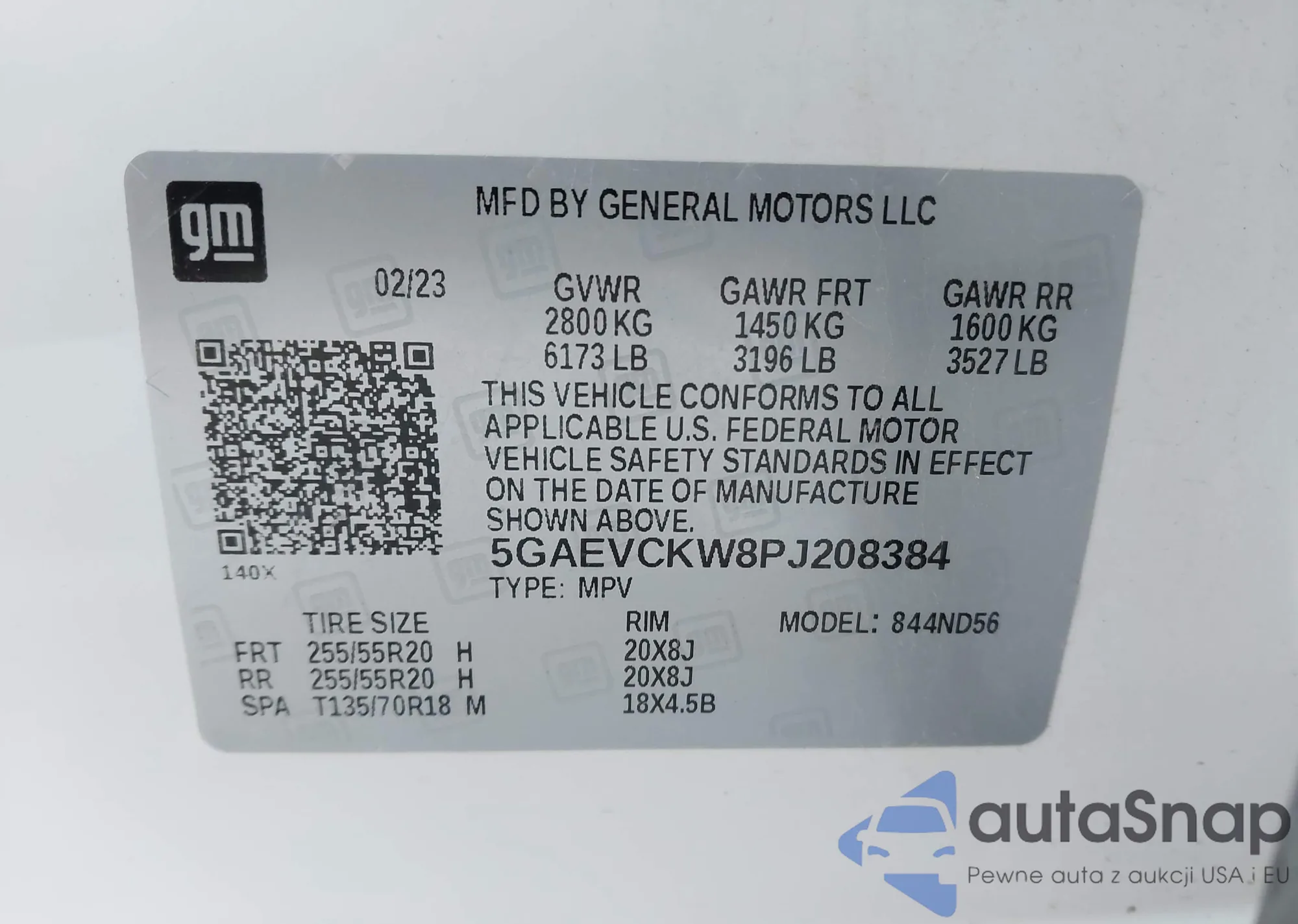 LOT: 43486568 VIN: 5GAEVCKW8PJ208384