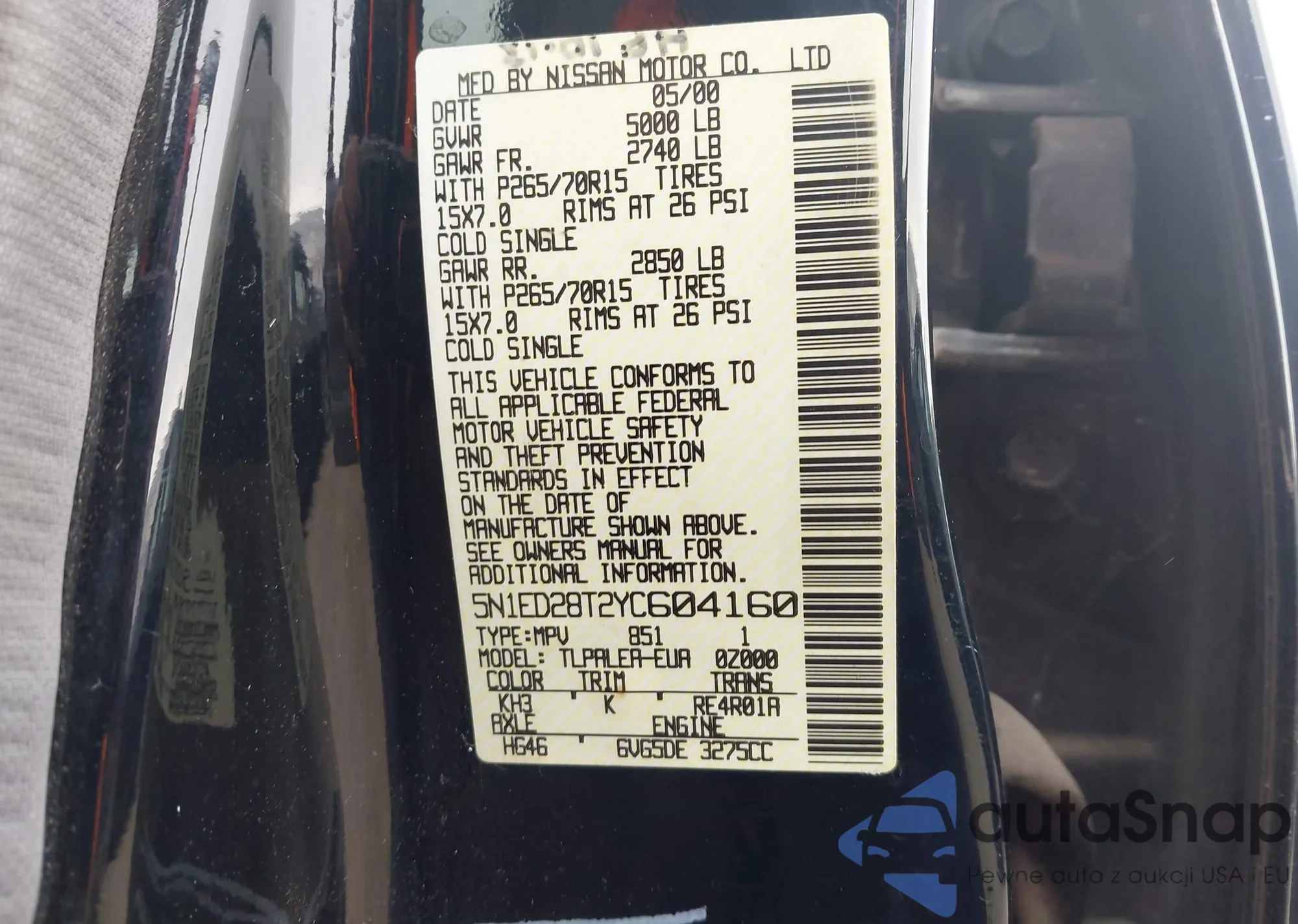 • VIN 5N1ED28T2YC604160