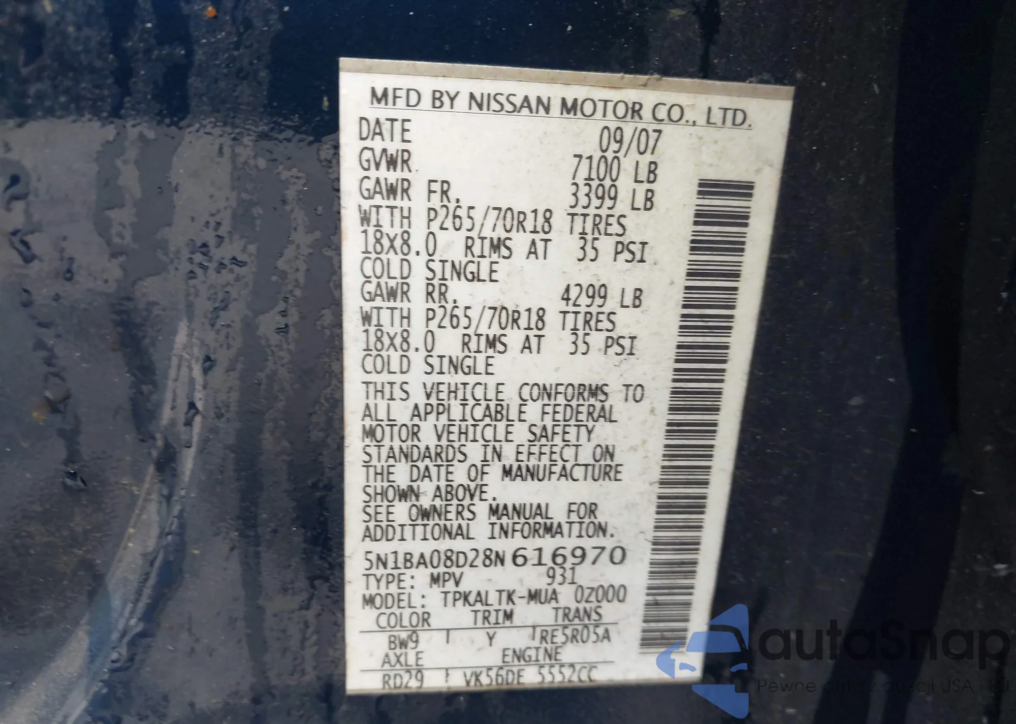 • VIN 5N1BA08D28N616970