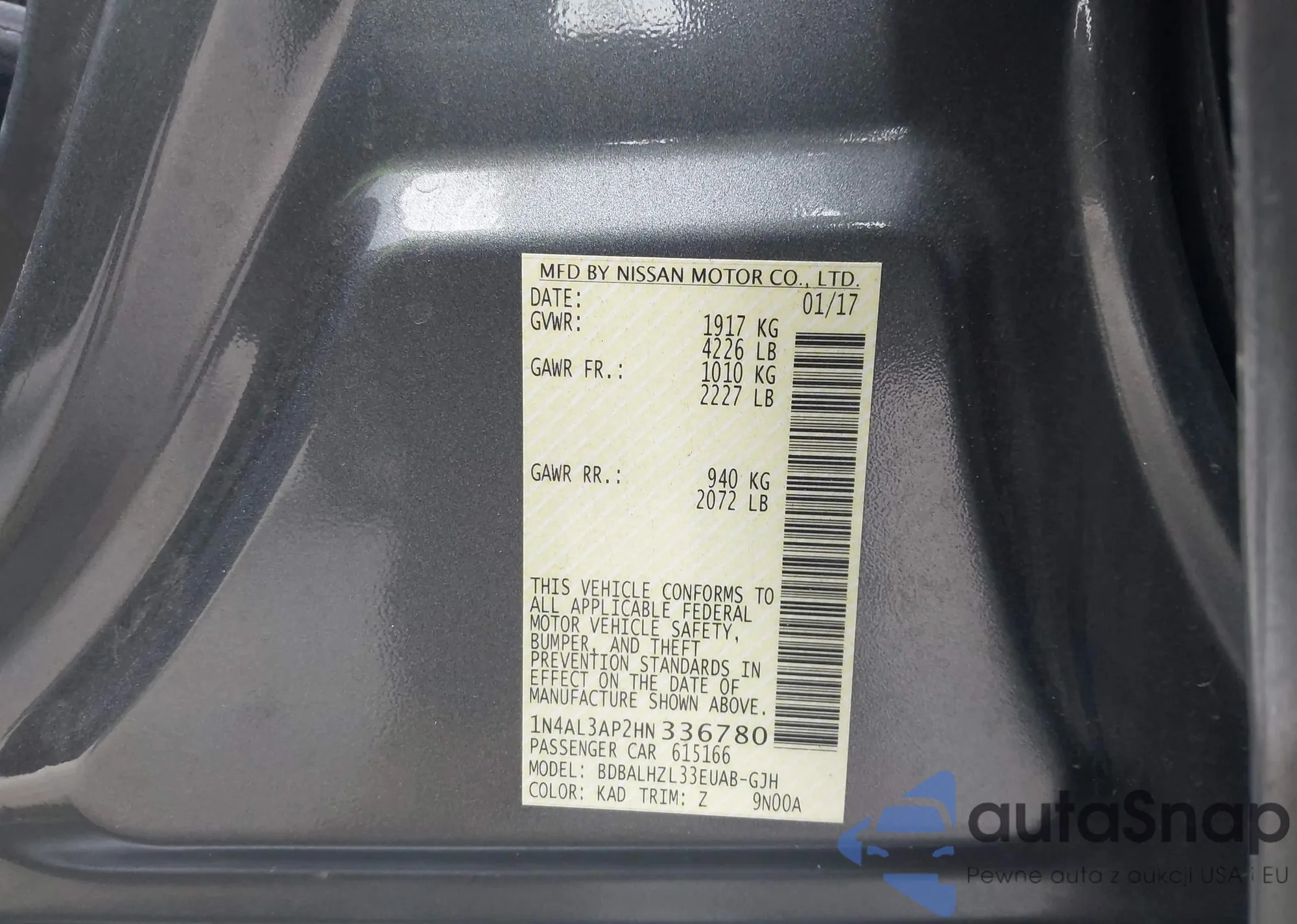 LOT: 44233176 VIN: 1N4AL3AP2HN336780