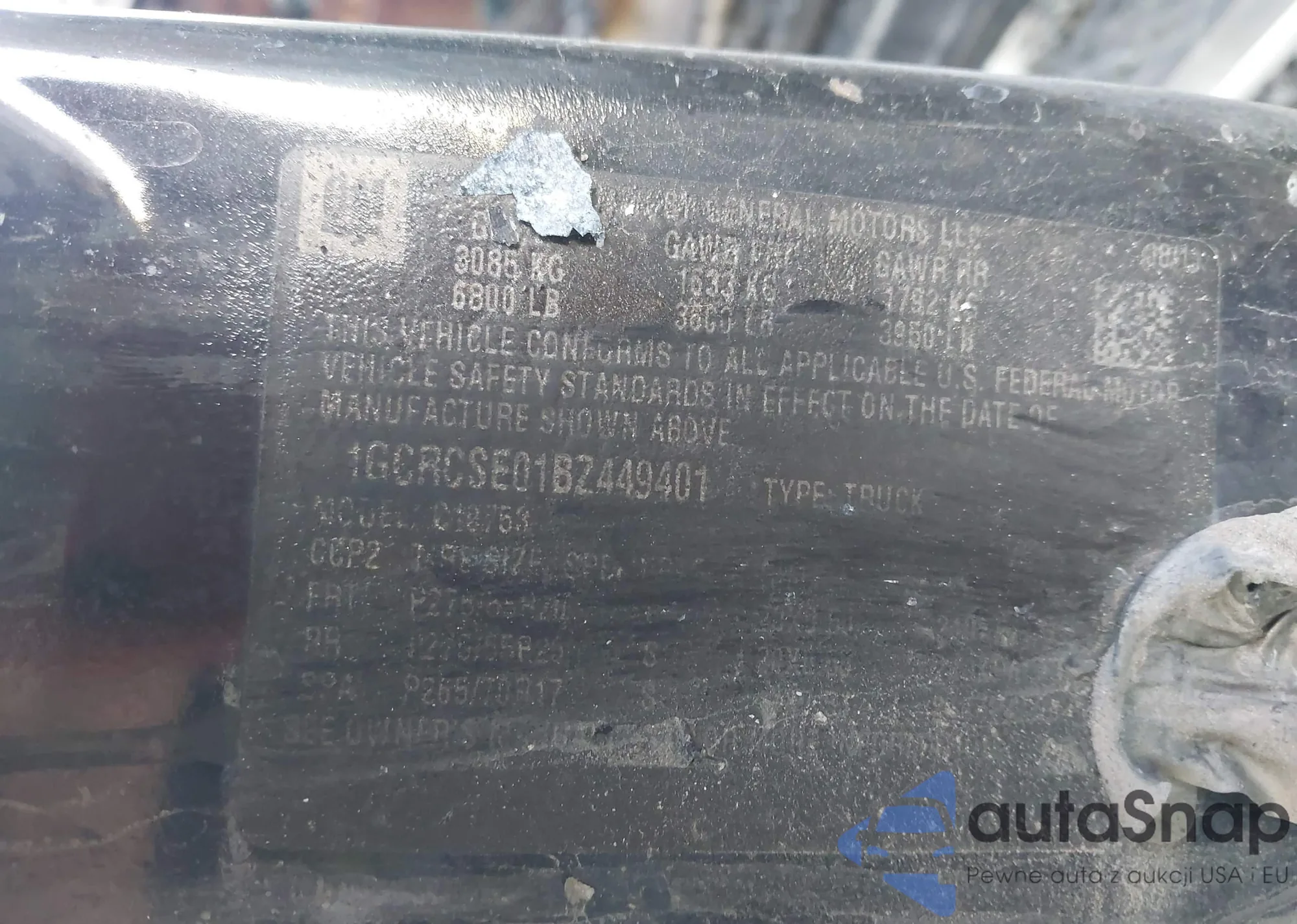 • VIN 1GCRCSE01BZ449401