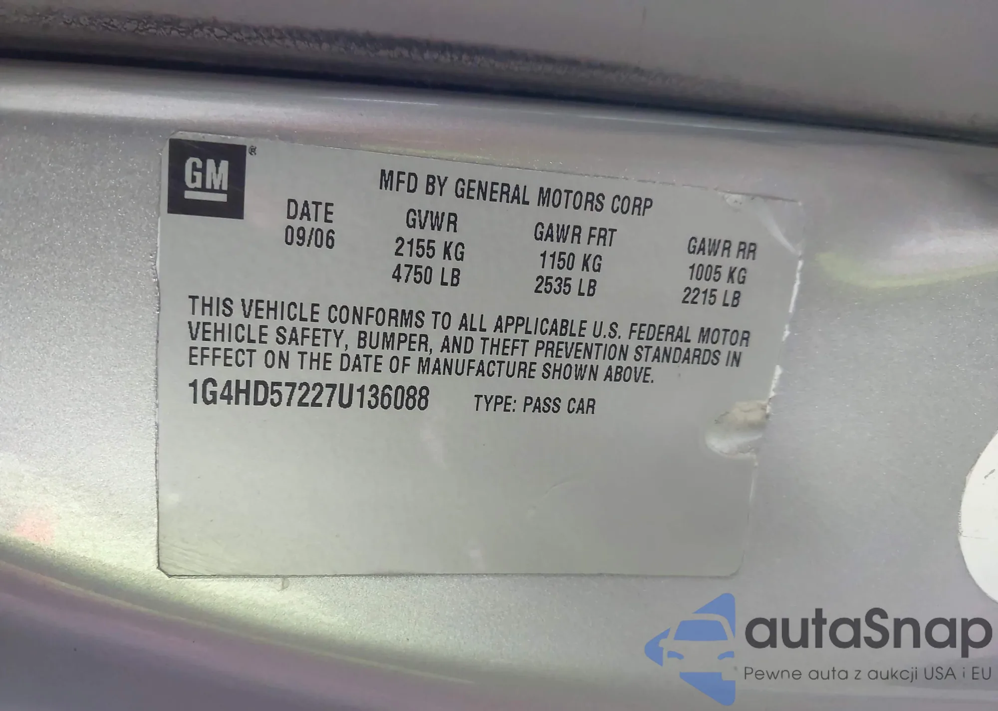 LOT: 42887217 VIN: 1G1YB2D40S5108476