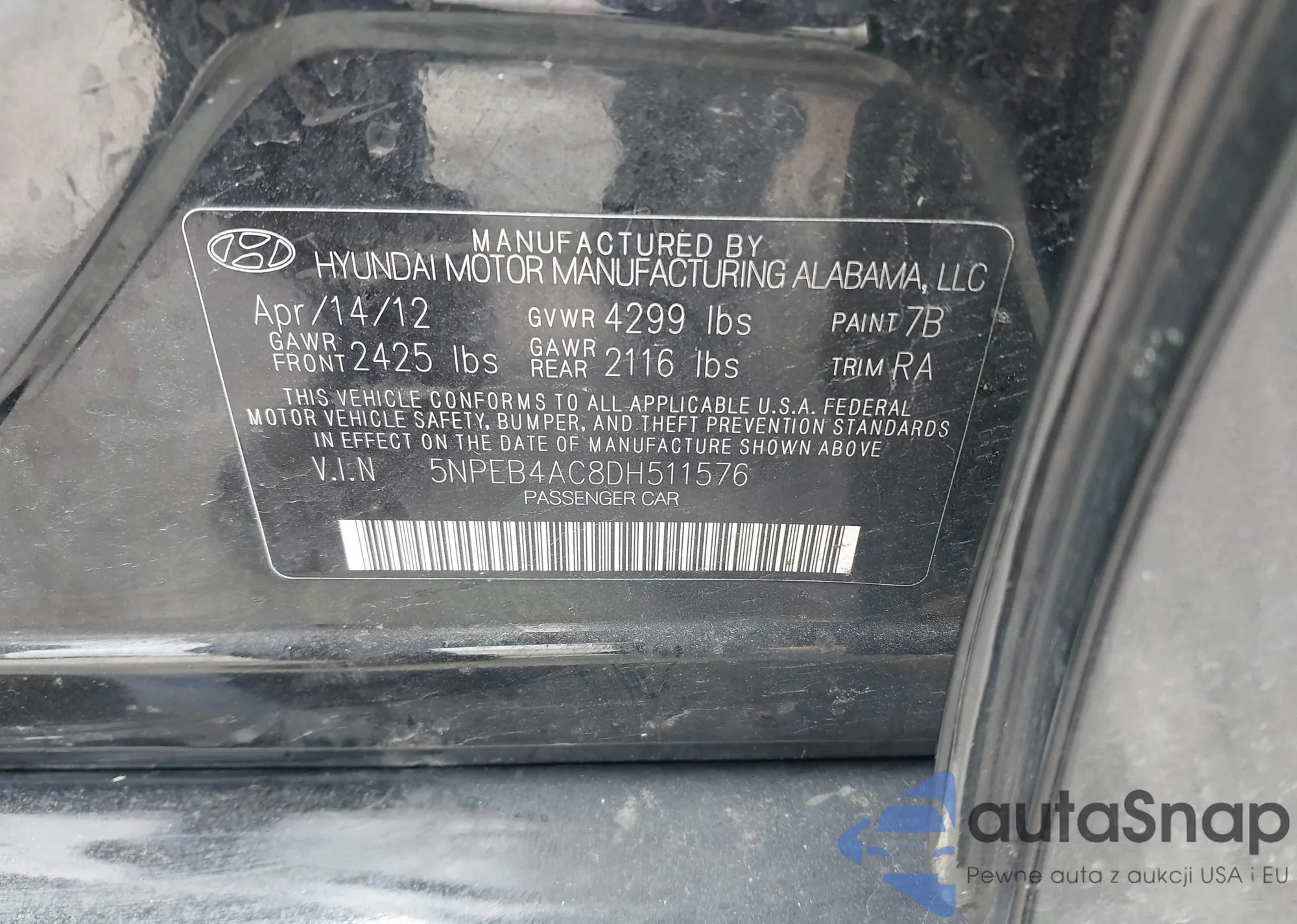 • VIN 5NPEB4AC8DH511576