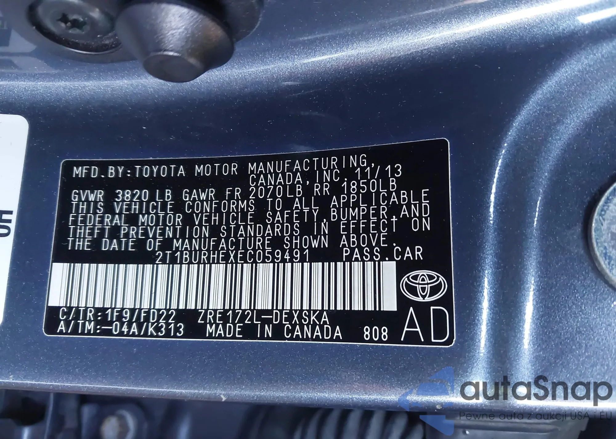 LOT: 43955295 VIN: 2T1BURHEXEC059491