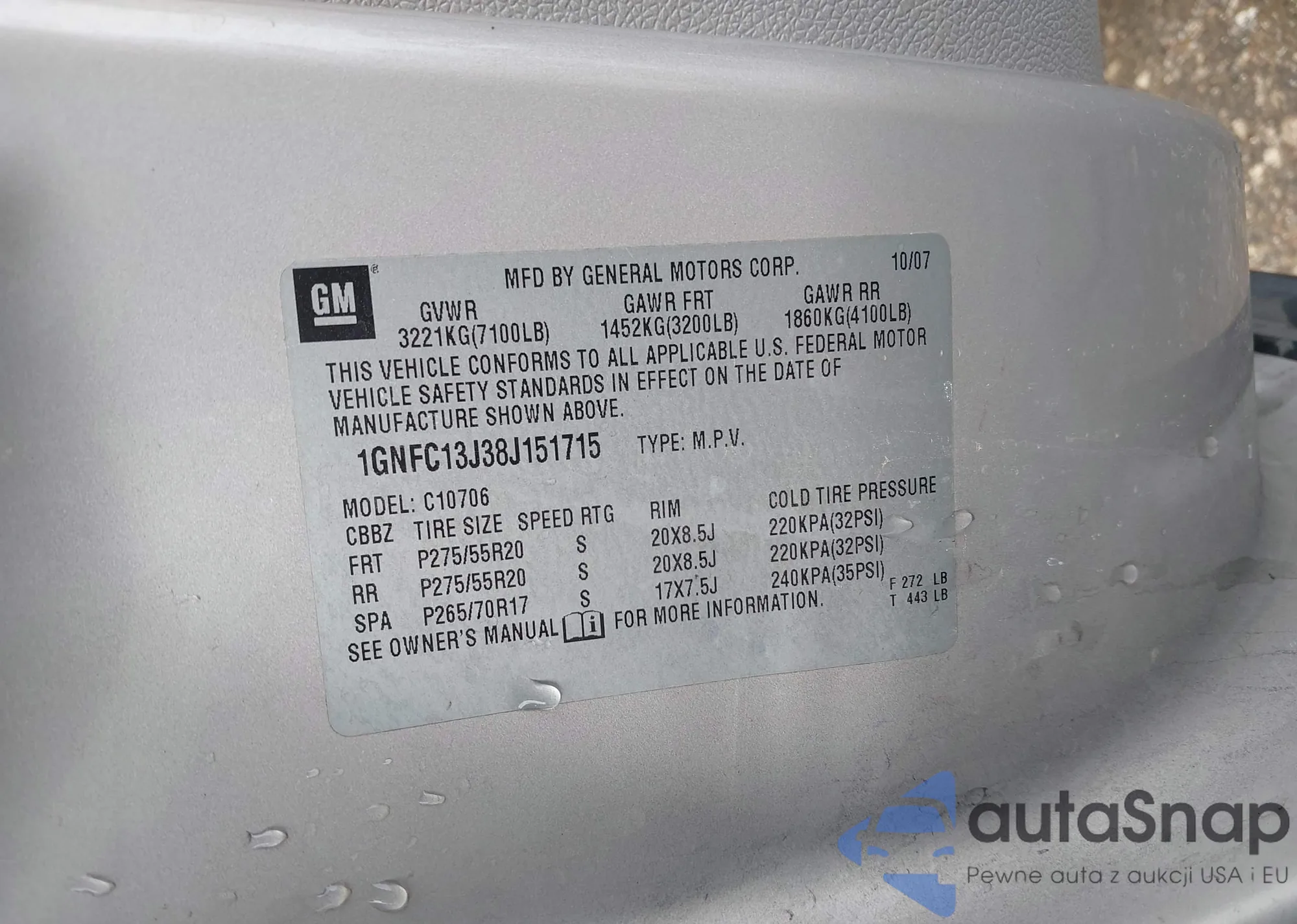 • VIN 1GNFC13J38J151715