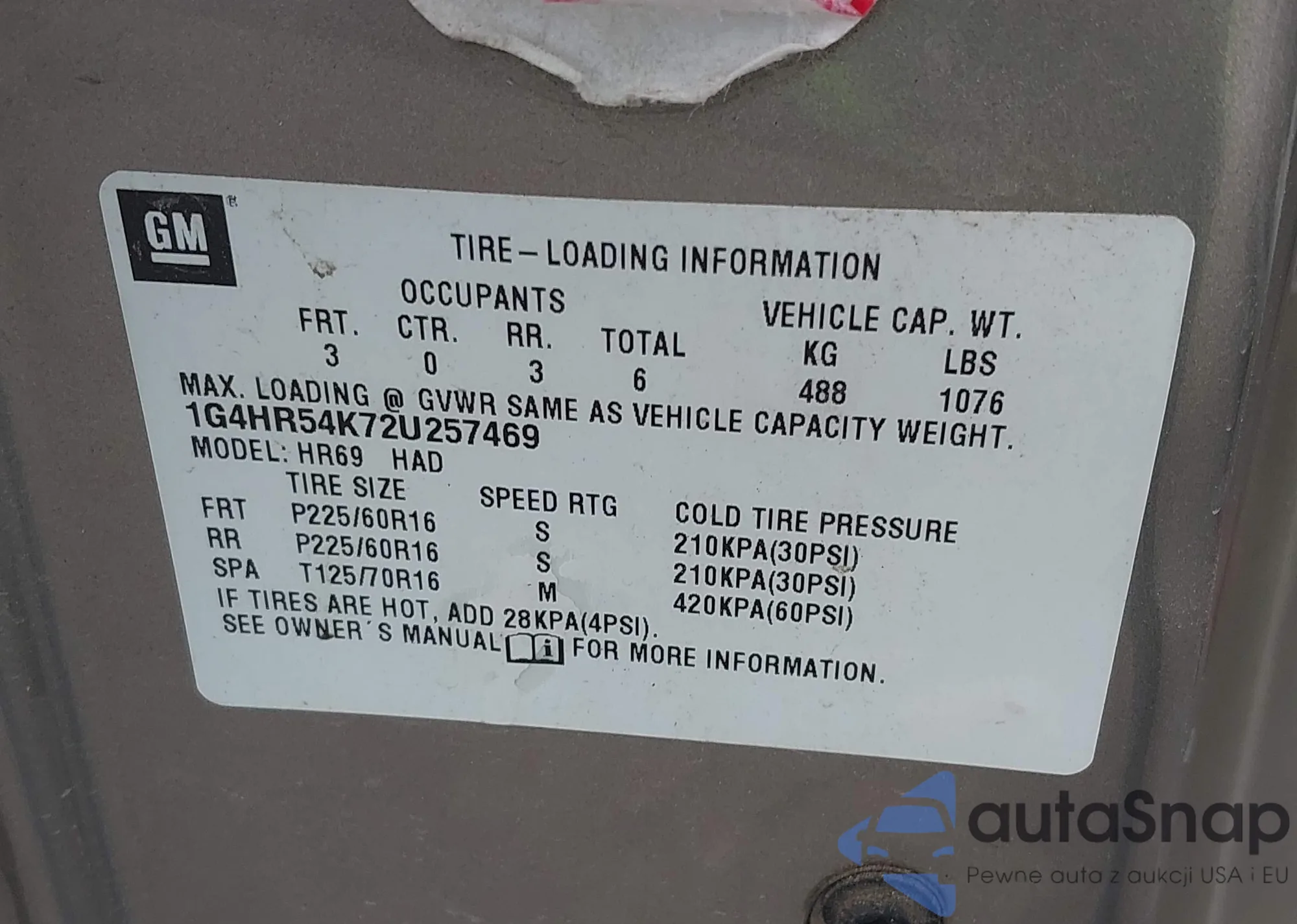 • VIN 2G2WP552261284827