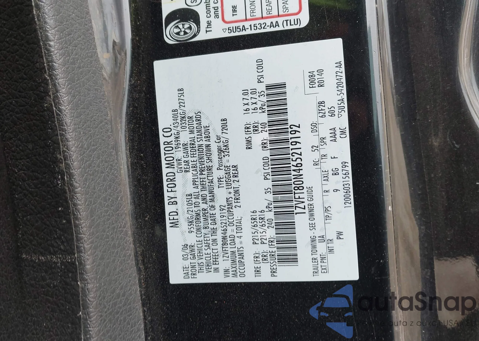 LOT: 44153291 VIN: 1ZVFT80N465219192