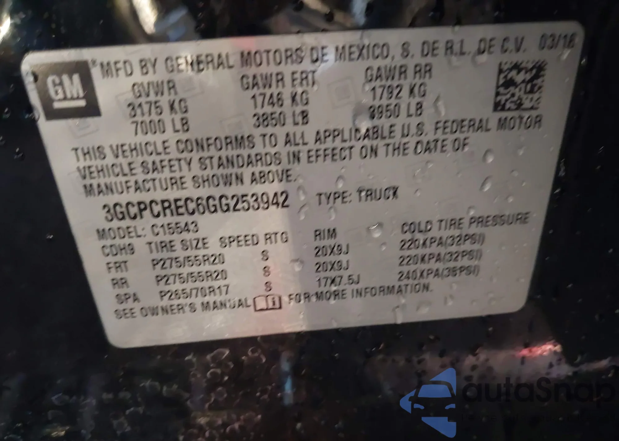 • VIN 3GCPCREC6GG253942