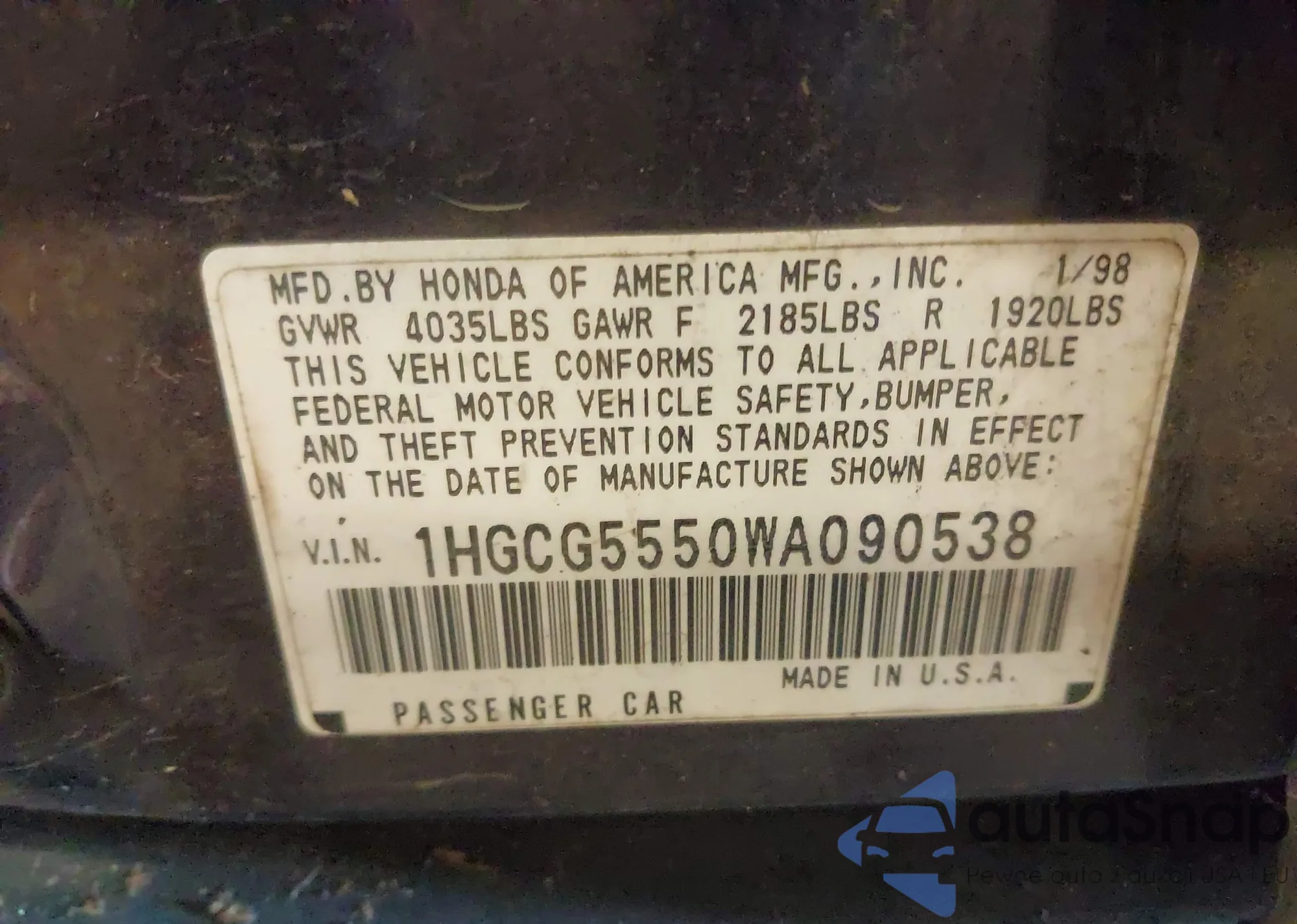 • VIN 1HGCG5550WA090538