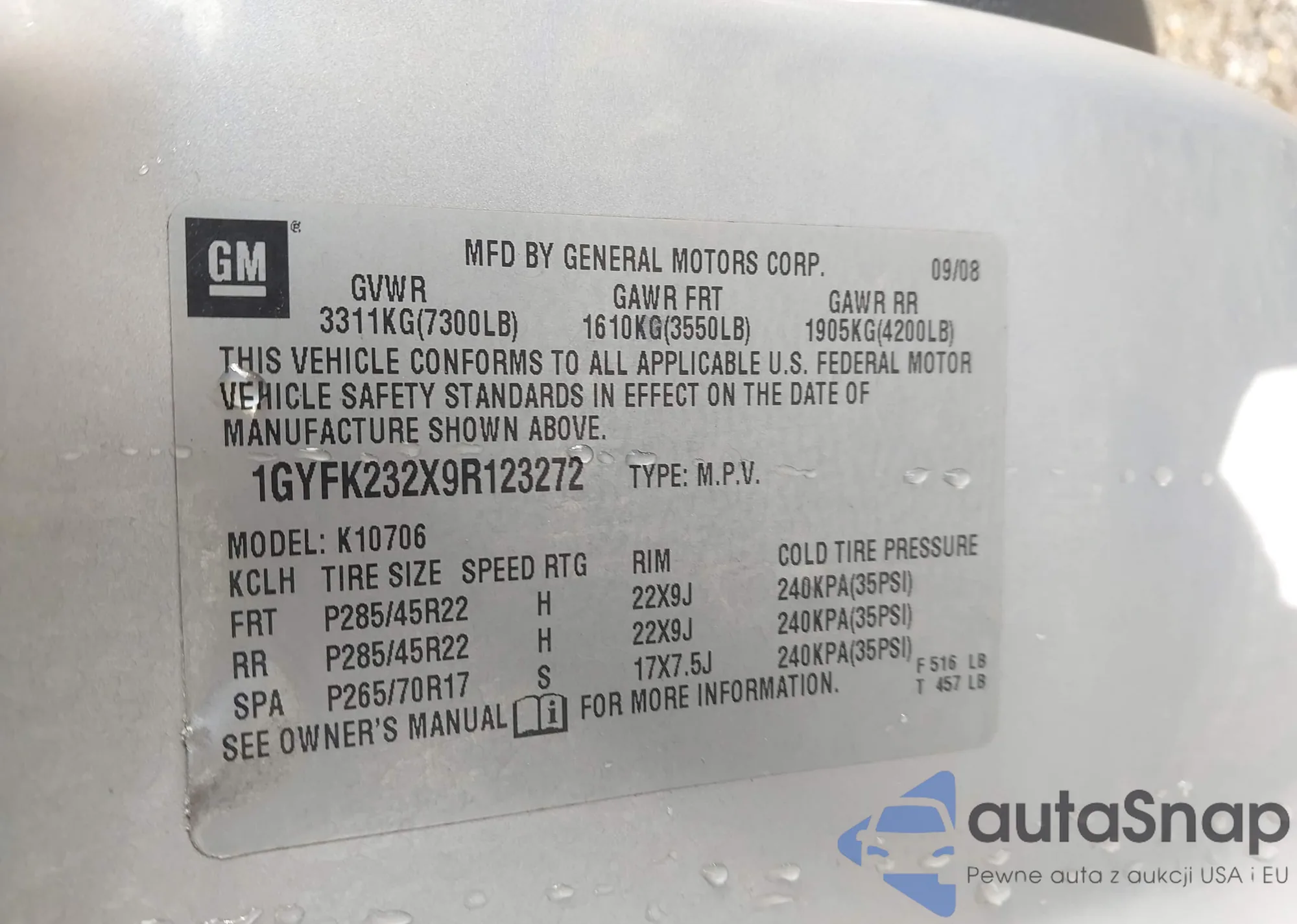 LOT: 44189494 VIN: 1GYFK232X9R123272