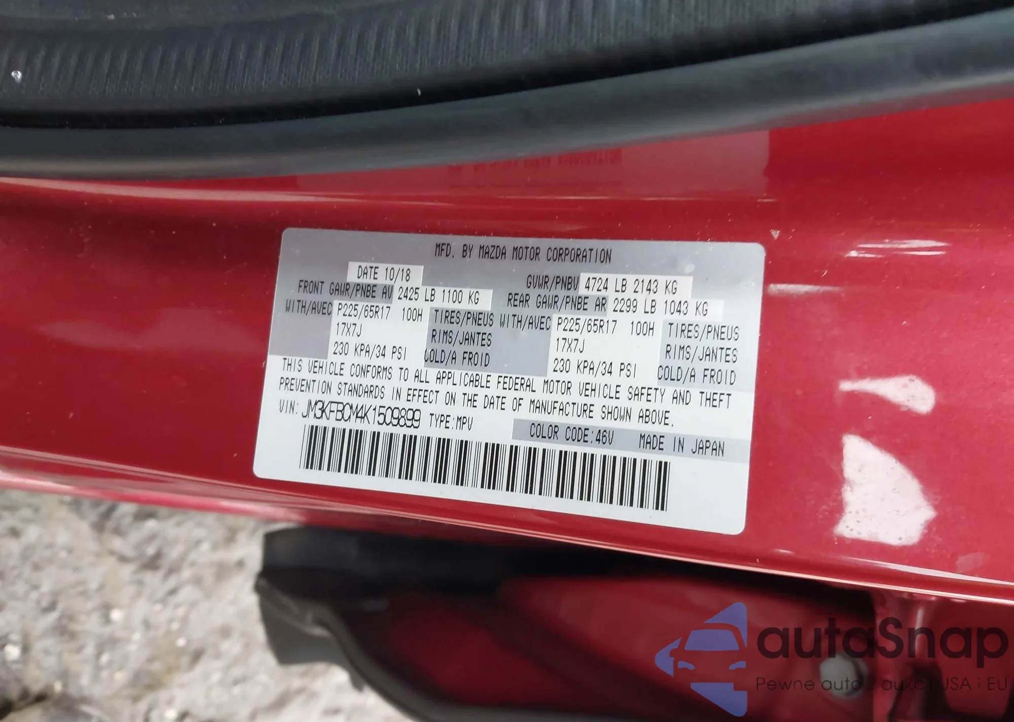 LOT: 44017177 VIN: JM3KFBCM4K1509899