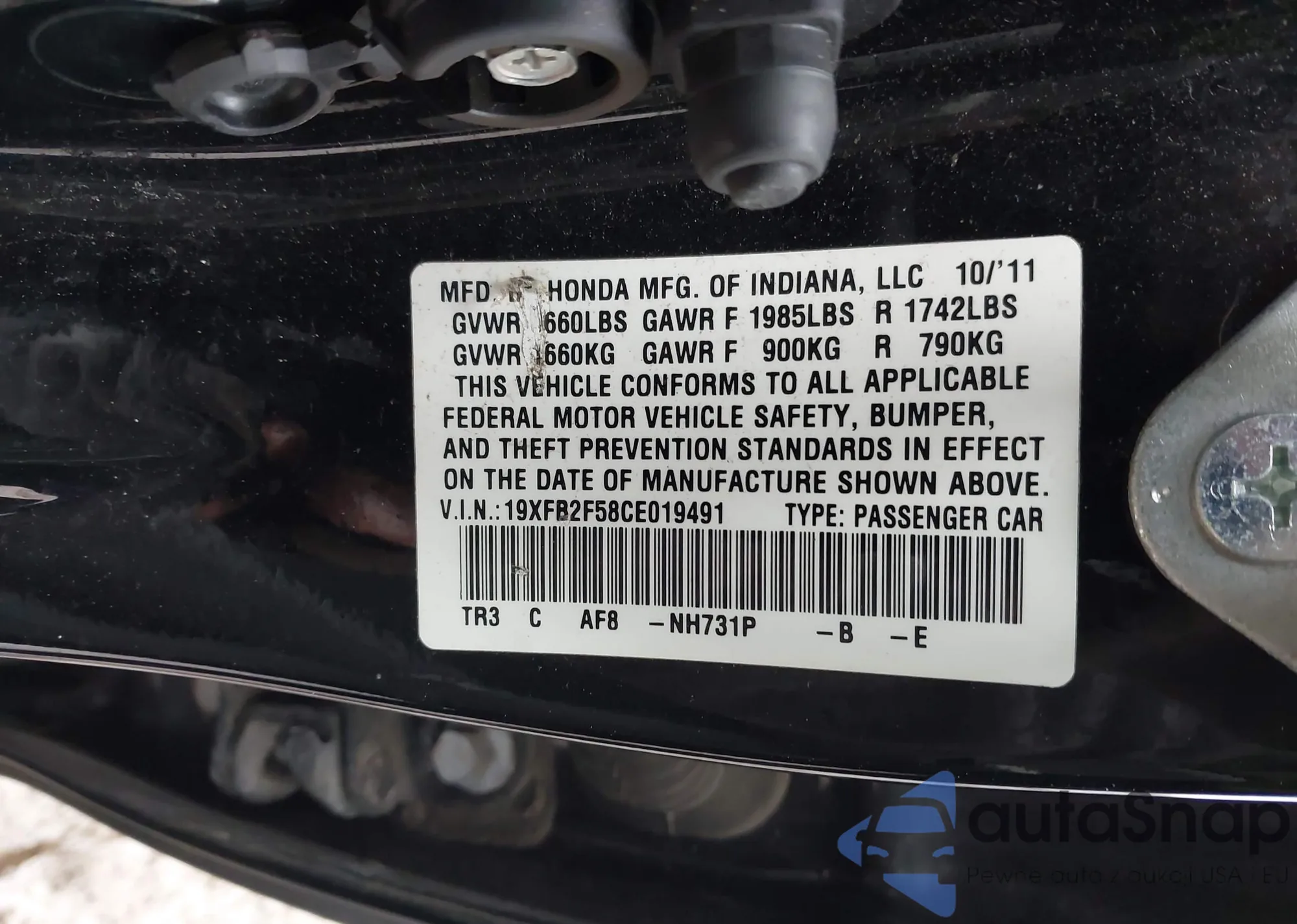 • VIN 19XFB2F58CE019491