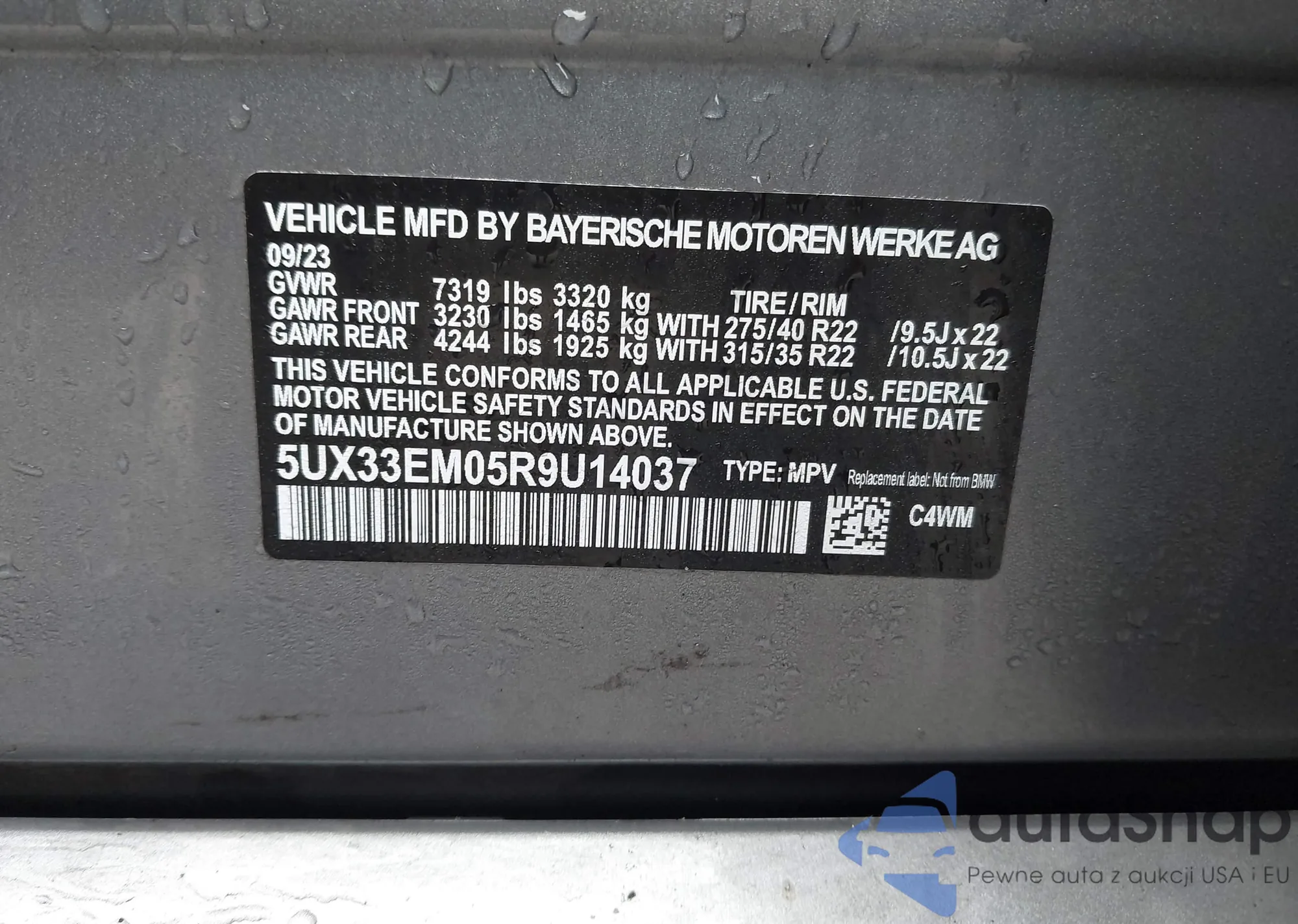 • VIN 5UX33EM05R9U14037