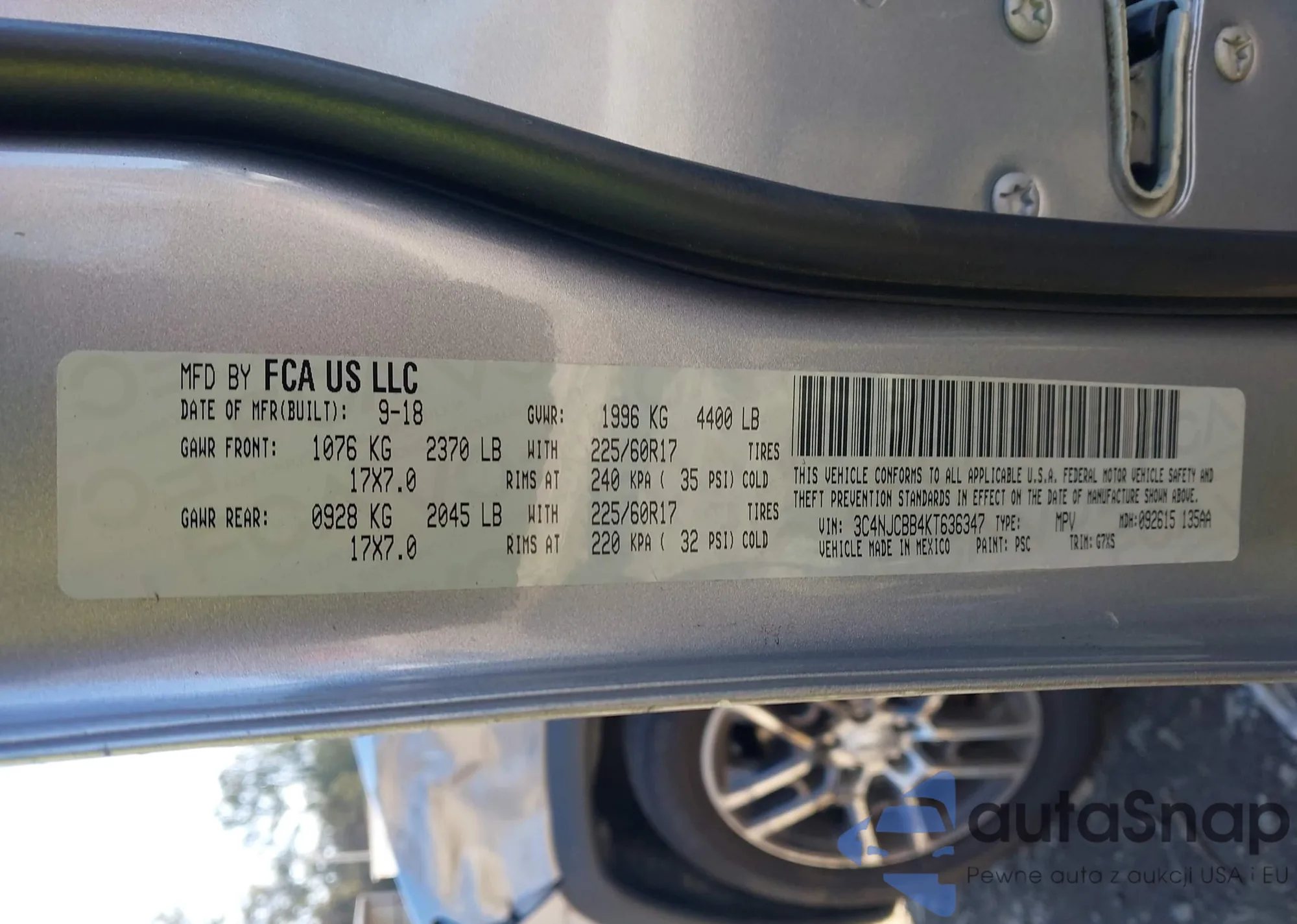 • VIN 3C4NJCBB4KT636347