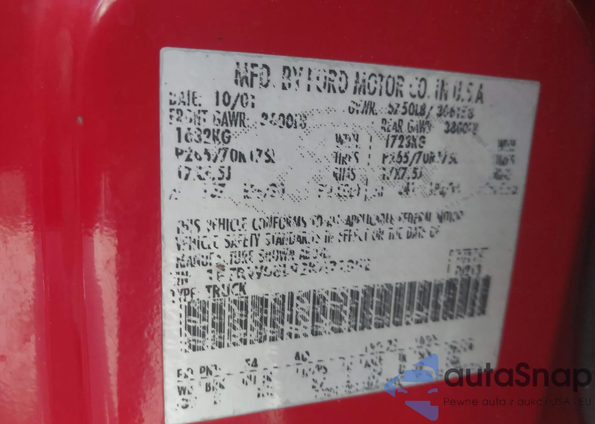 • VIN 1FTRW08L92KA72052
