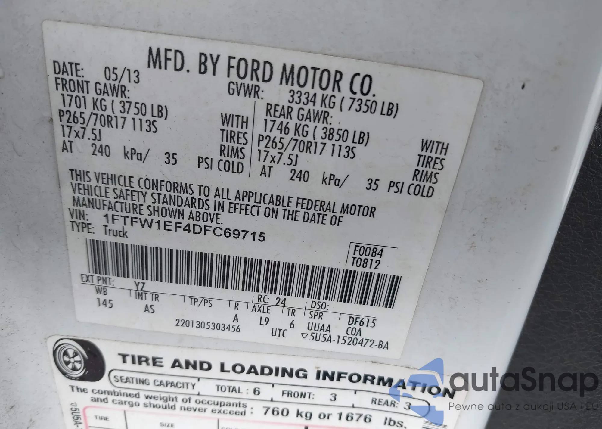 • VIN 1FTFW1EF4DFC69715