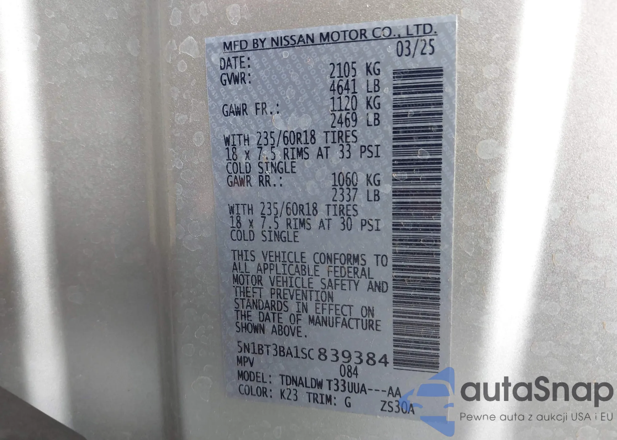 LOT: 44227323 VIN: 5N1BT3BA1SC839384