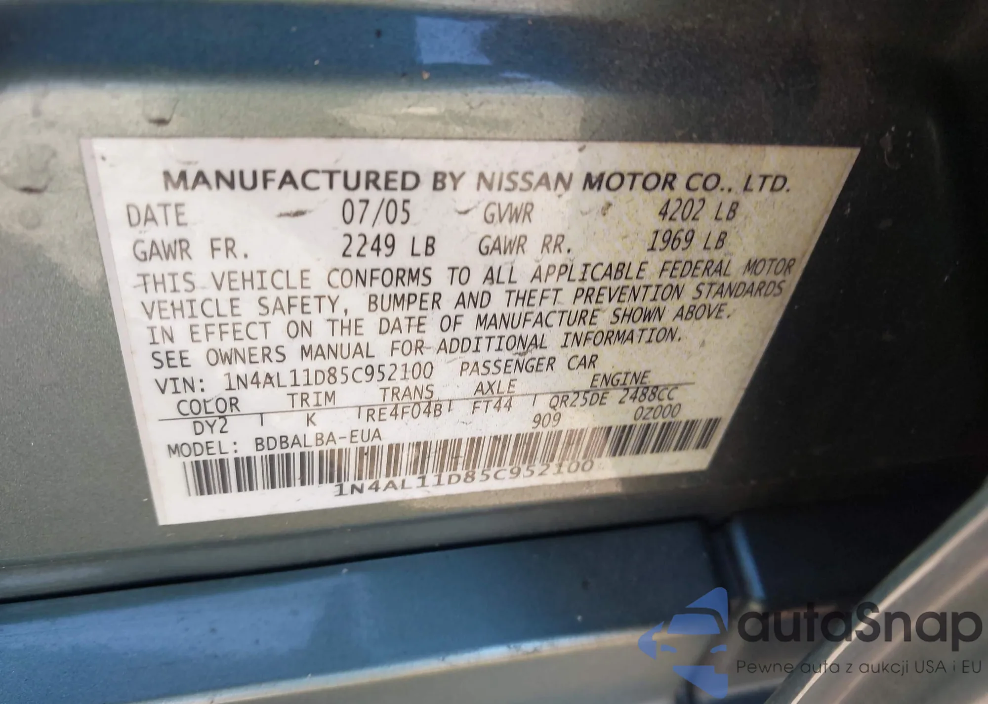 • VIN 1N4AL11D85C952100
