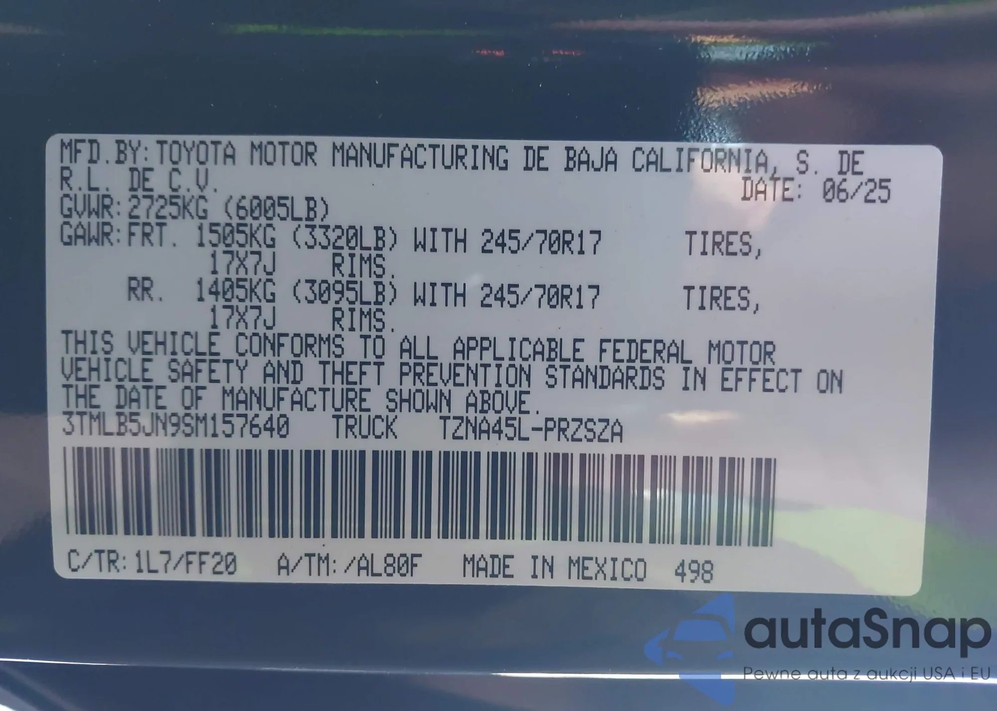 • VIN 3TMLB5JN9SM157640