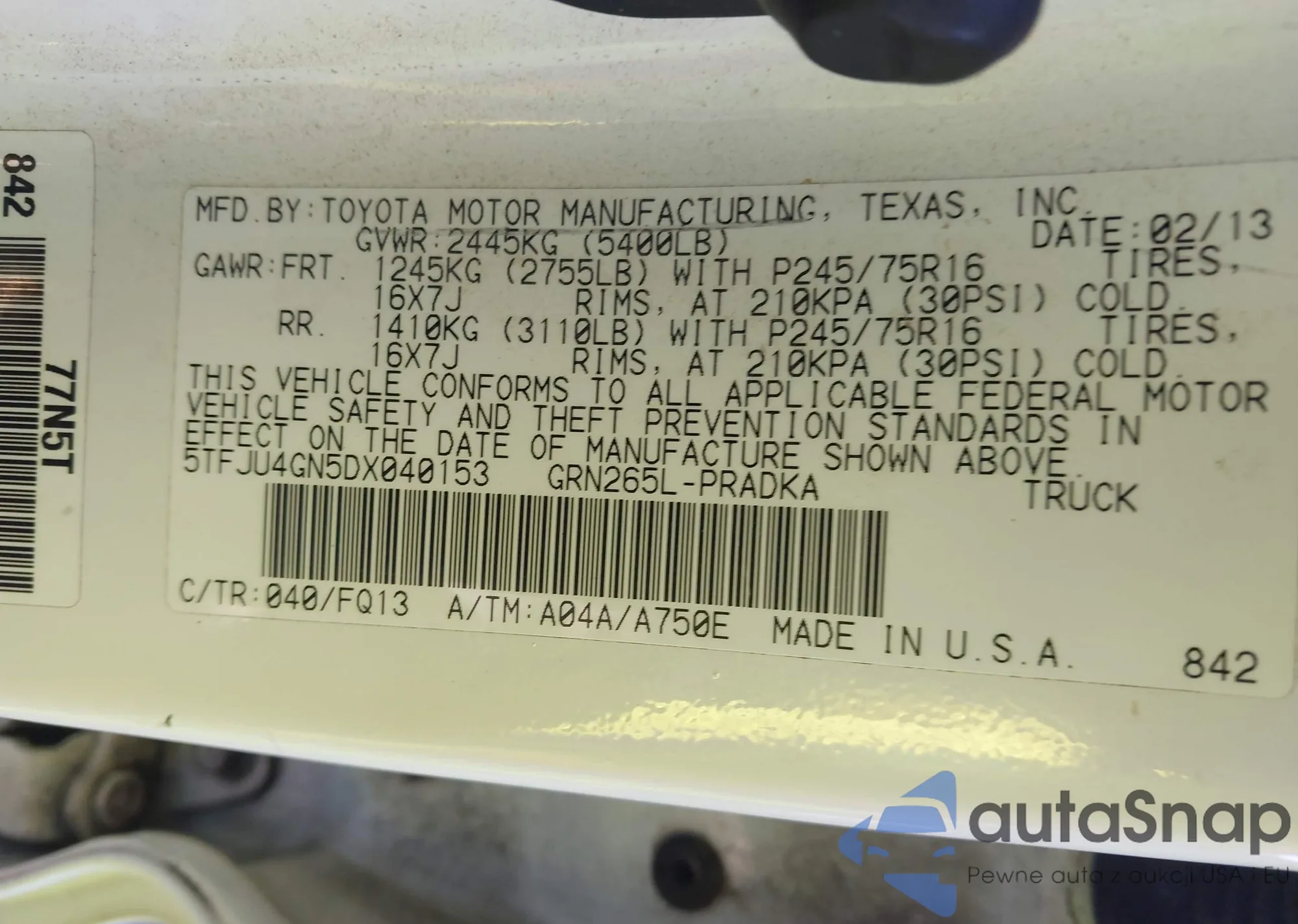 • VIN 5TFJU4GN5DX040153